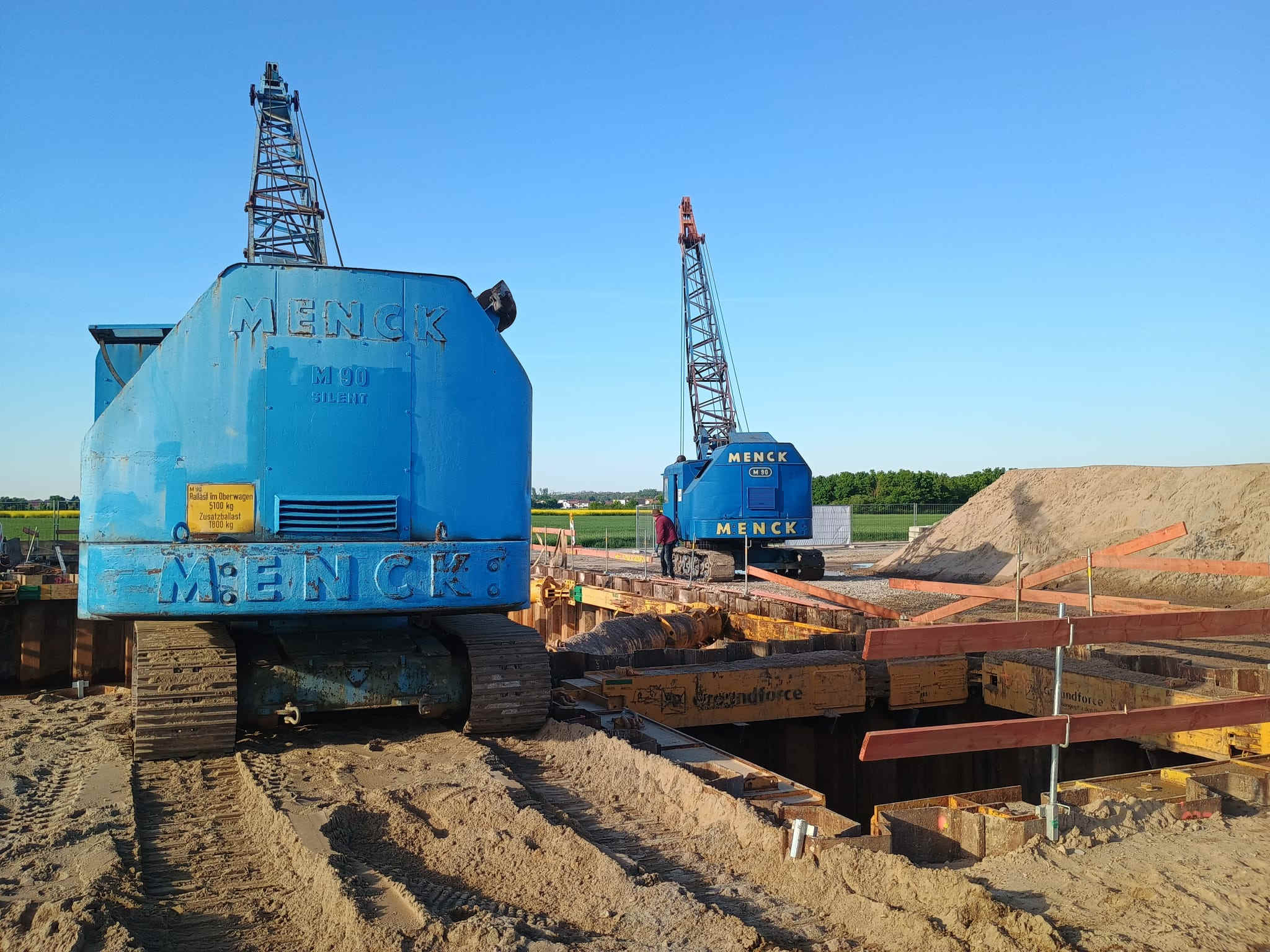 Aktuell gibt es in Darmstadt bei einer Schachtaushebung zwei Menck M 90 zu bestaunen.