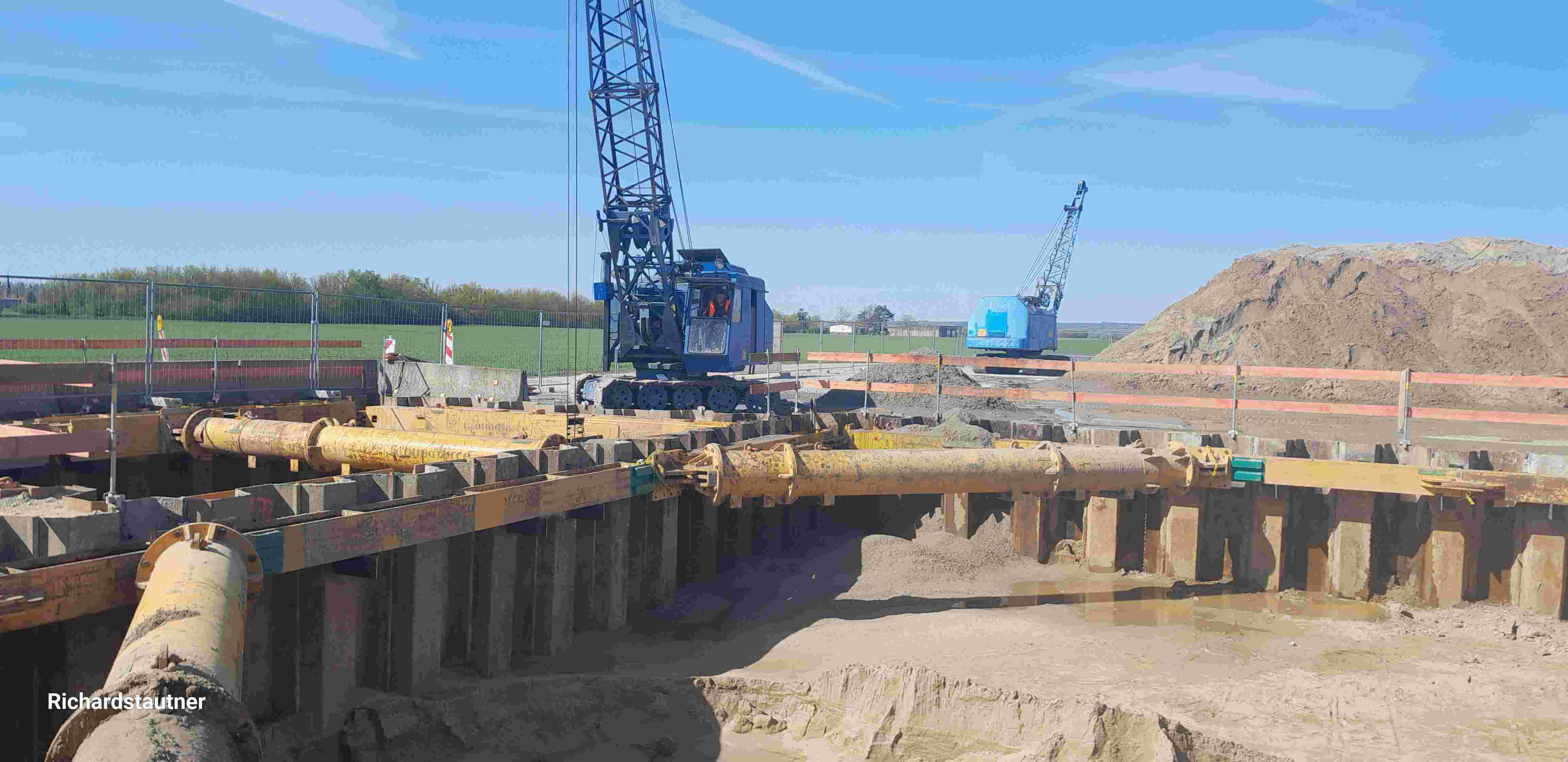 Hier müssen diverse Düker gebaut werden. Mit dem M 60 werden die benötigten Schächte auf 17 m abgeteuft. Das Ausbubmaterial wird aktuell lediglich in den Hauptschacht abgeworfen, von wo aus es verladen und abtransportiert wird. Zu einem späteren Zeitpunkt wird es auch wieder zu direkten LKW-Verladungen kommen.