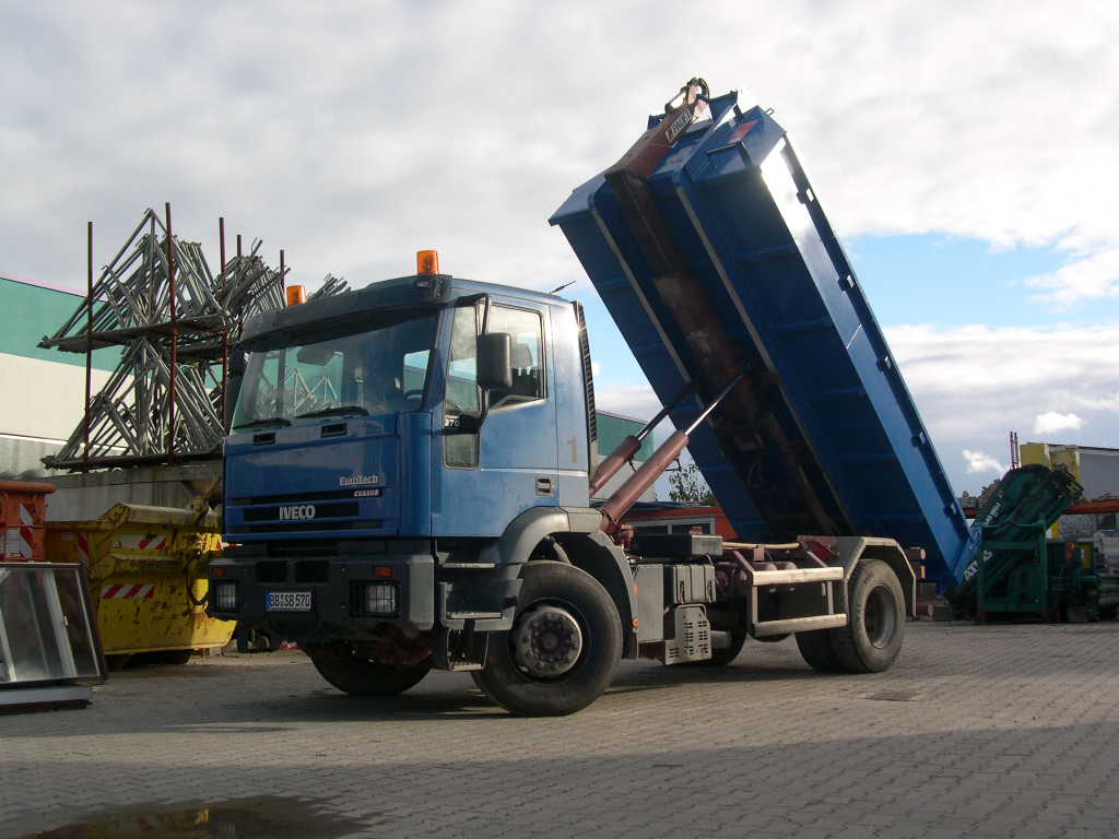 IVECO 190E270 Eurotech Cursor Turbo mit Palfinger Abrollkipper! Auf dem ersten Bild ist auch noch unser Krancontainer drauf mit nem ATLAS 180.1 Ladekran.