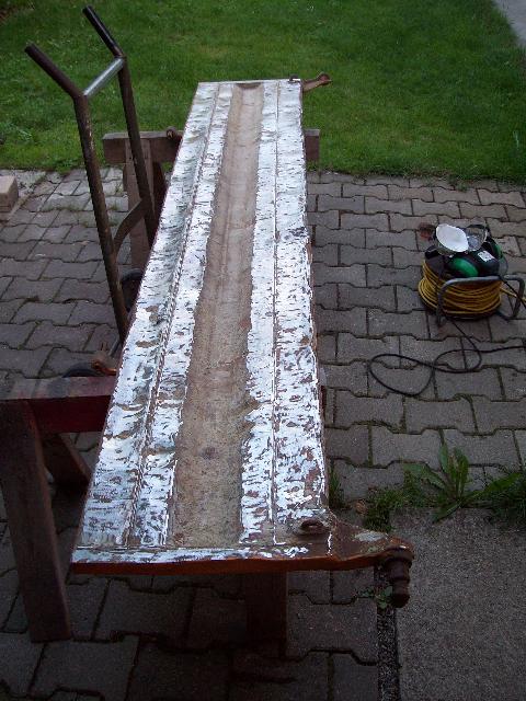 ie neue Stoßstange die mein Vater selbst gebaut hat , da die alte so start zerfahren war .