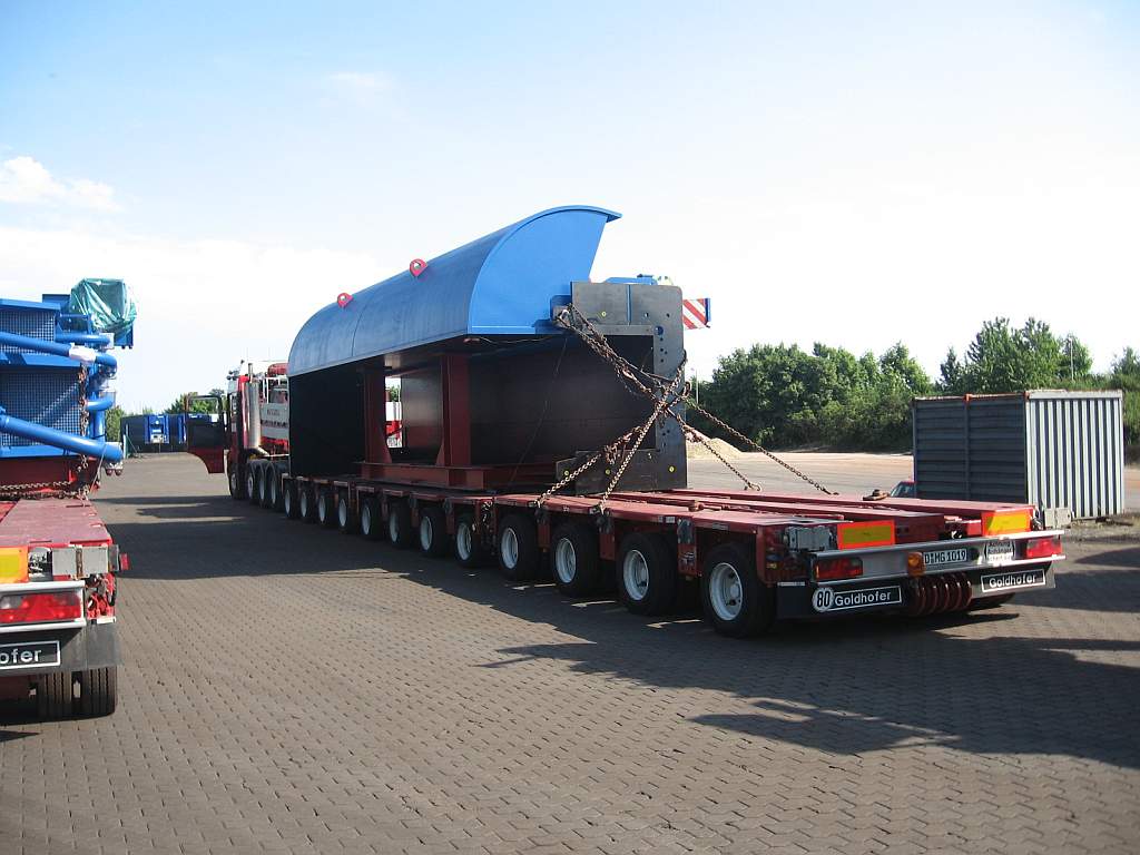 Am Donnerstag um ca. 0500Uhr kommt in Vöklingen eine Blocktransformator aus Reckensburg an. Gewicht ca. 140 t, Länge ca. 40 Meter.