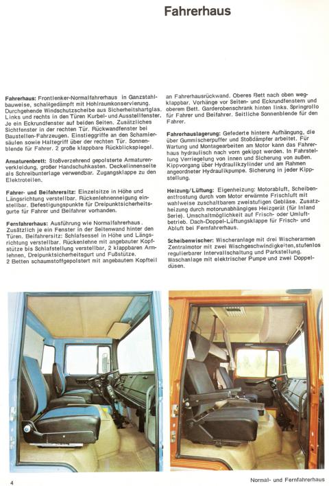 Schon in den Sechziger Jahren hatte der FAUN- Fernverkehrslaster (fragt jetzt bitte nicht nach der Typenbezeichnung; der mit dem 250PS- Deutz- Motor, die Kabine saß dann auch bei den Schwerlastzugmaschinen hinter der Haube, weißte Bescheid?) ein geräumiges Fahrerhaus mit einem nur 10 cm hohen Motortunnel. Das war schon was zur damaligen Zeit, wenn man von den Büssing- Fahrerhäusern mal absieht.