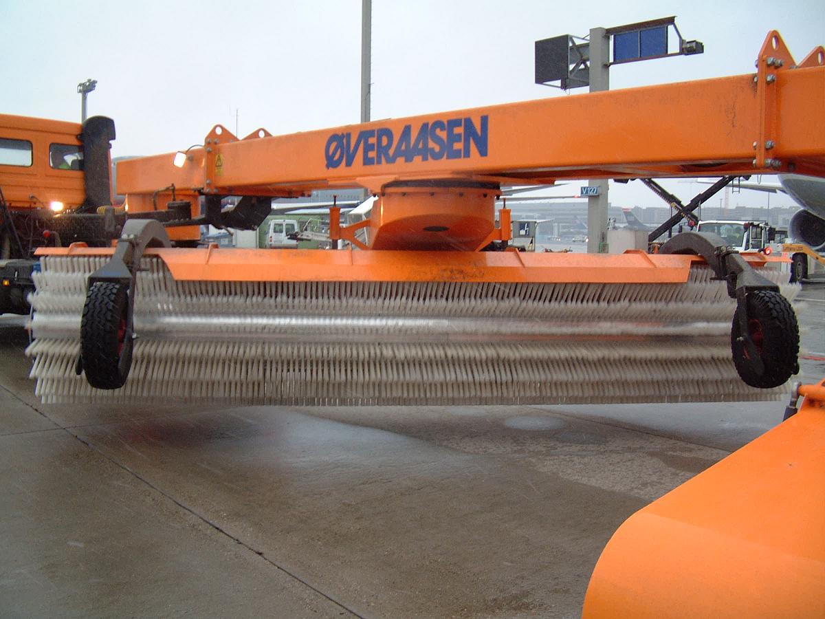 Hauptsächlich wird das sogenannte Kehrblasgerät eingesetzt. Die Sattelzugmaschine hat vorne ein hydraulisch schwenkbares Räumschild, welches für den Einsatzzweck beigeklappt und verriegelt wird.