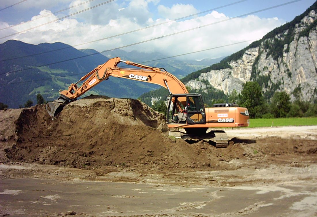 Für das Aufschütten des Untergrundes wurde aus einem Kieswerk aus der Region Material herangeführt,und Schicht für Schicht eingebaut und verdichtet.Wenn die Belastungsmessungen ihre Werte erfüllten, wurden wieder weitere 20 cm. aufgetragen und verdichtet. So wurde der Untergrund auf der ganzen Fläche 80-120 cm. aufgeschüttet. Für die Transporte durften nur Euro4 und Euro 5 Fahrzeuge eingesetzt werden. Das Veranlagte wiederum die Transportunternehmer zur Erneuerung ihrer Fahrzeugflotten.