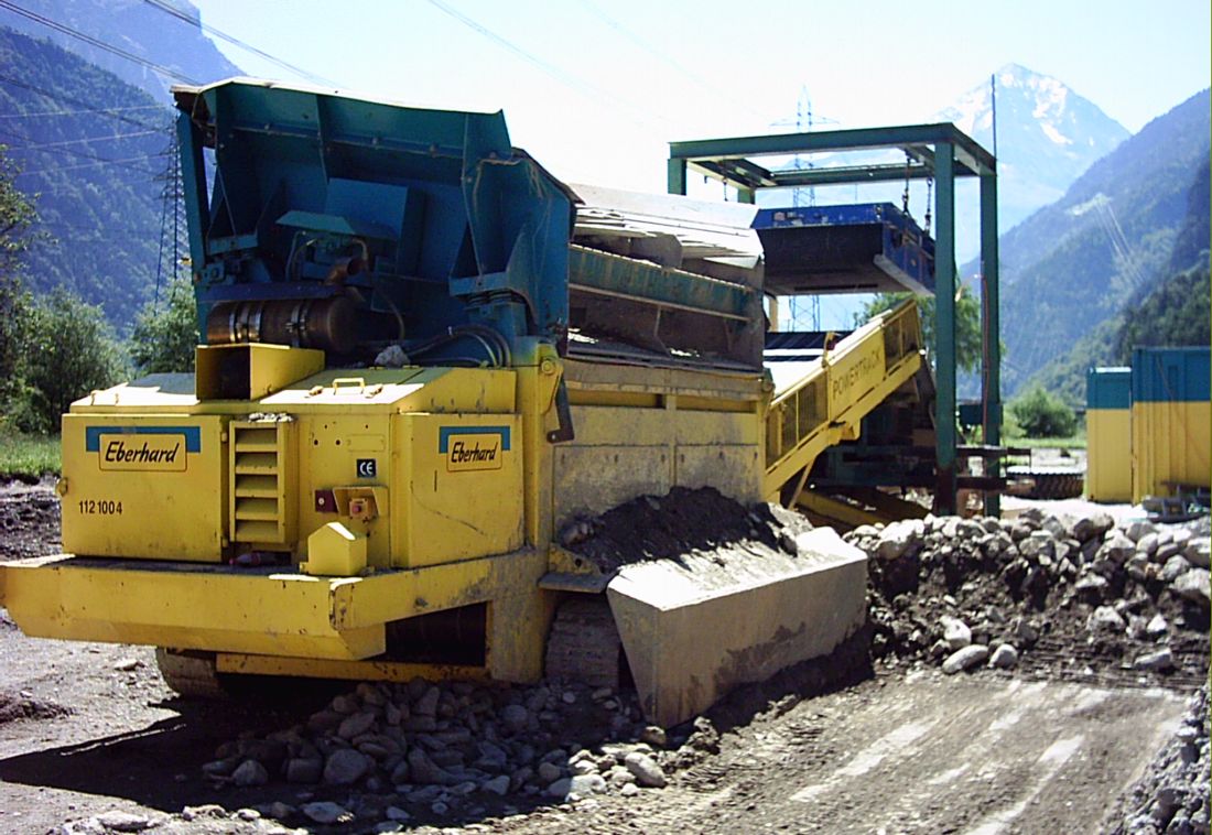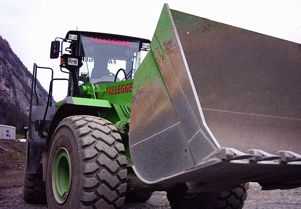 Um das angefallenen Felsmaterial von der Zufahrt und das Steinzeug von der alten Deponie aufzubereiten war die Fa. Fallegger mit schönen und grossen Geräten eingetroffen. Die Farbgebung ist nicht Altäglich ,mir aber gefällt sie, da sie durch den ganzen Maschinenpark durchgezogen wird.