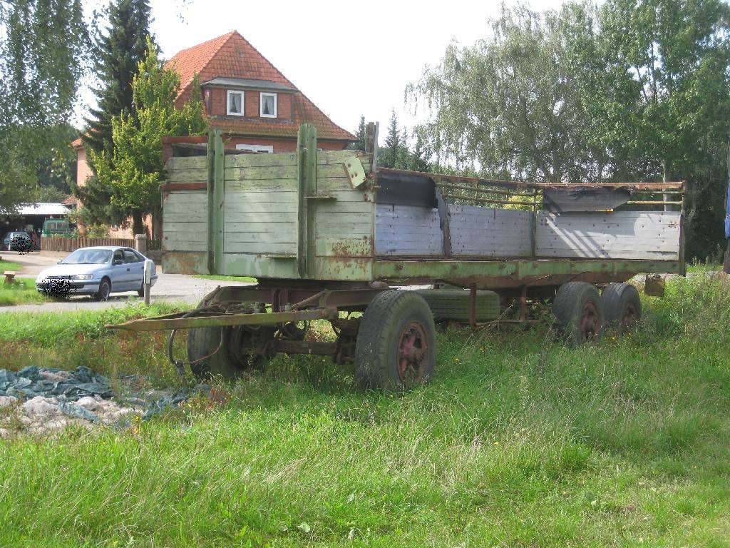 Ich bin in der Nähe von Lüneburg auf einen frei auf dem Acker stehenden Anhänger gestoßen, dessen Hersteller mir unbekannt ist.