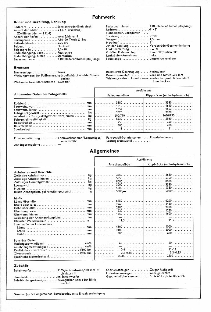Bild 1 zeigt die Front und das Werbeschild für den Econom mit zwei gelenkten Vorderachsen. Dieser 6,5 Tonner besass eine gute Lenk- und Rangierfähigkeit und konnte mit einem 45PS Deutz-, 63 PS Kämper- oder 90 PS Fordmotor geordert werden.