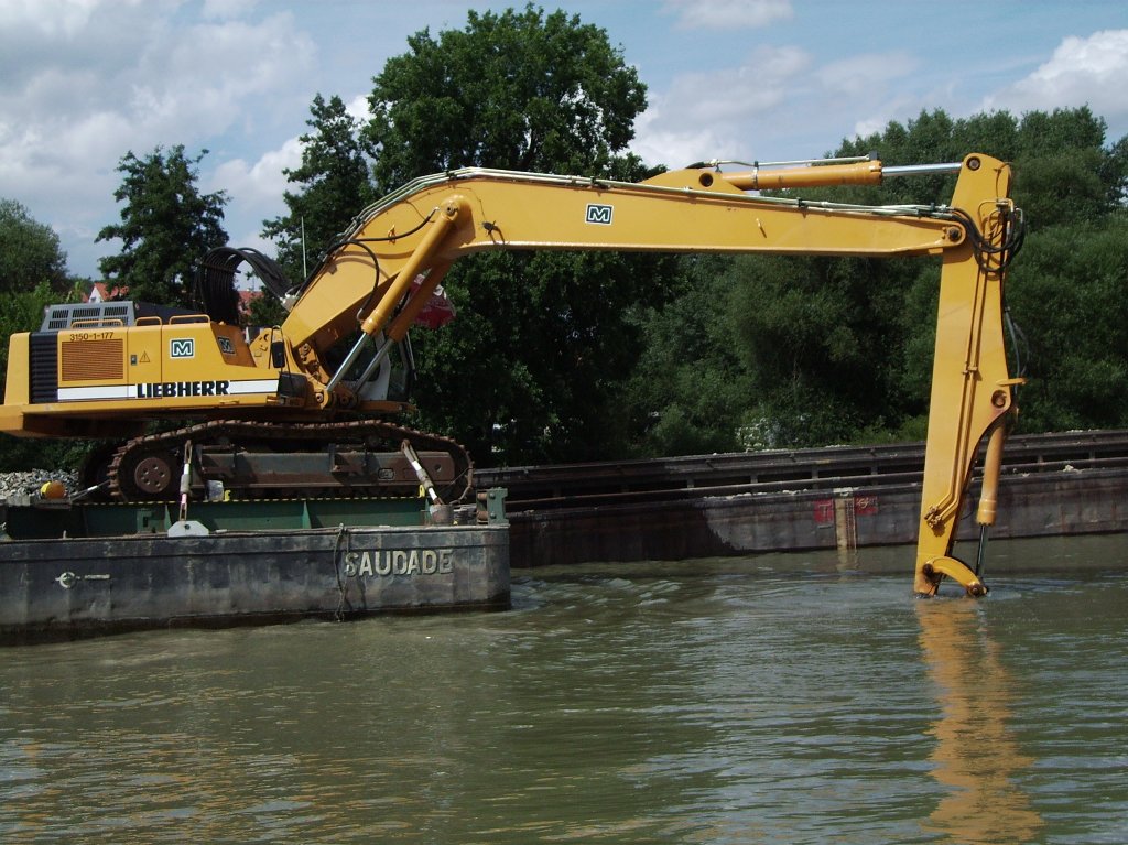 Tolle Bilder! Sieht fast so aus als hätte dieser Ponton-Bagger eine Liebherr Krankabine drauf!
