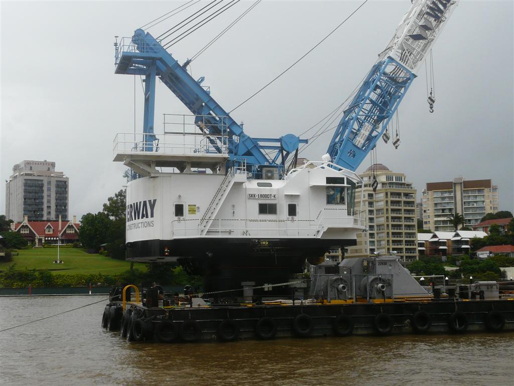 Dieser hier ist dabei Hochwasserschaeden in Brisbane zu beseitigen. Wiederaufbau der zerstoerten Faehranleger