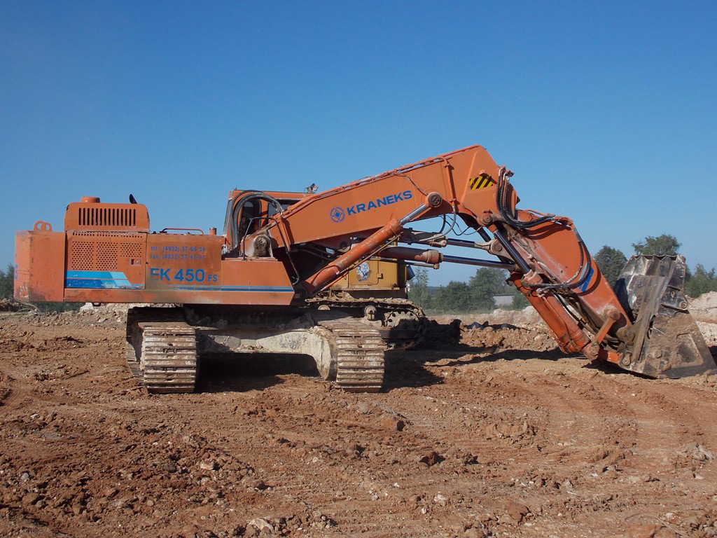 Der Unter- sowie Oberwagen sehen aus wie bei nem Fiat-Hitachi FH 450.