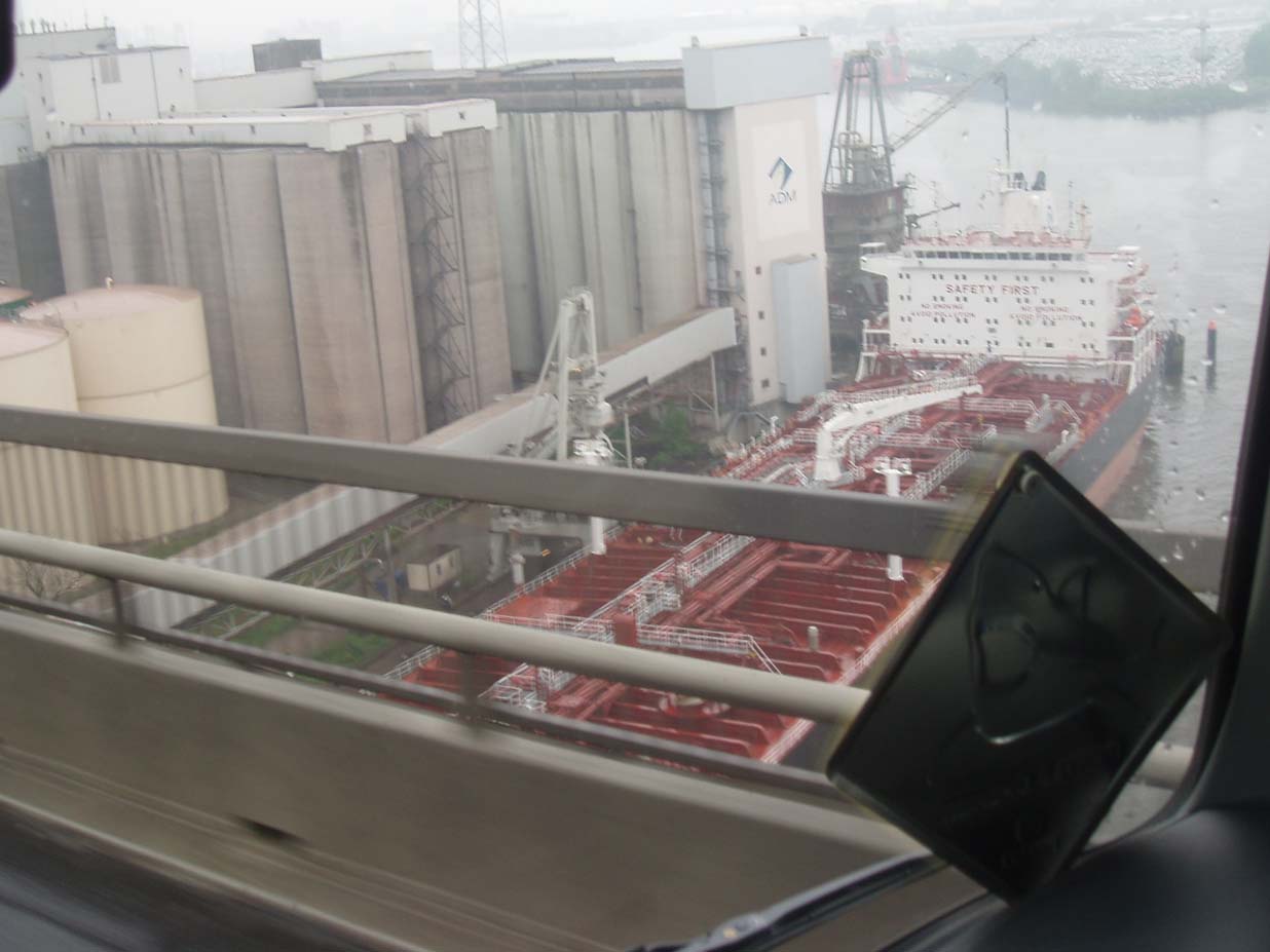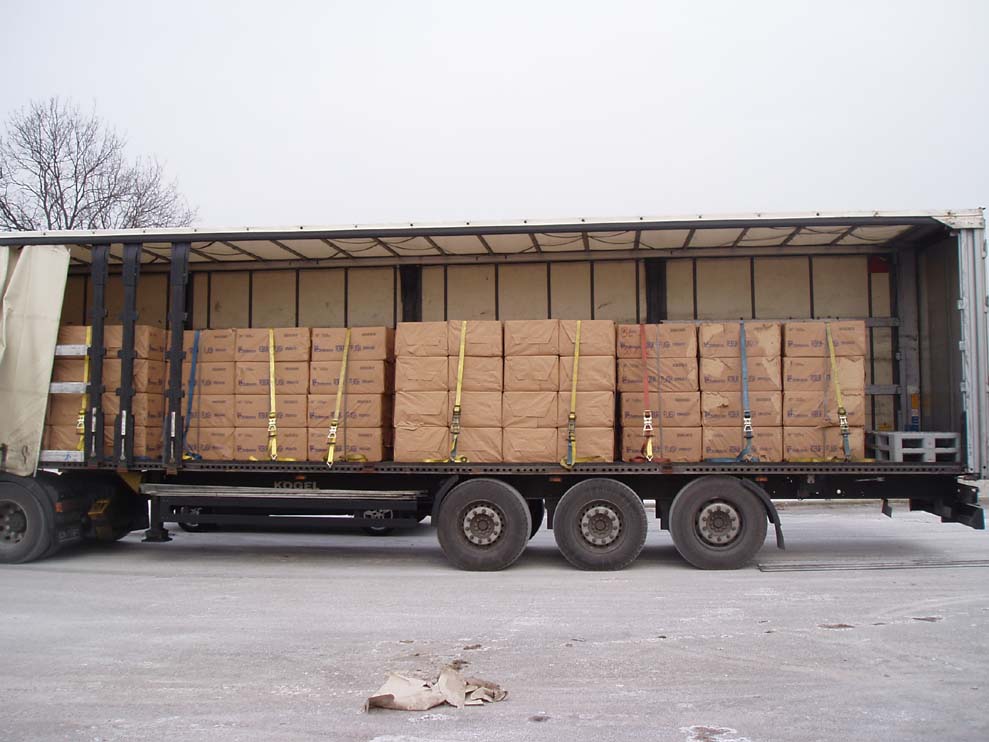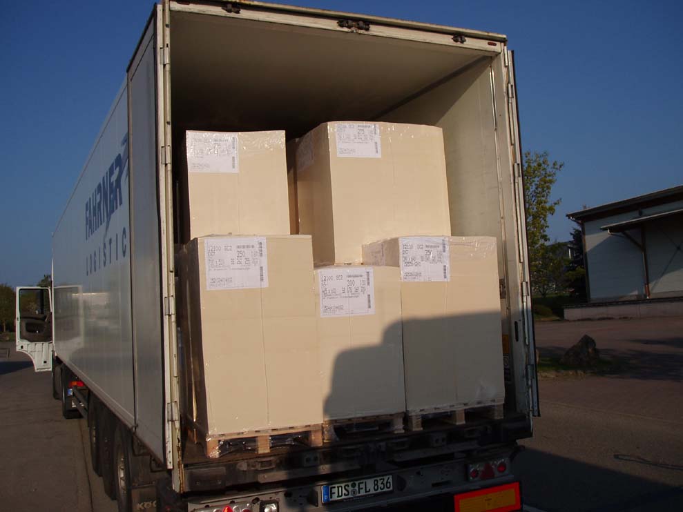 Das passiert wenn man dort entladen muss wo kaum Platz ist, denn das Fahrzeug muss immer schräg stehen damit es leichter geht...