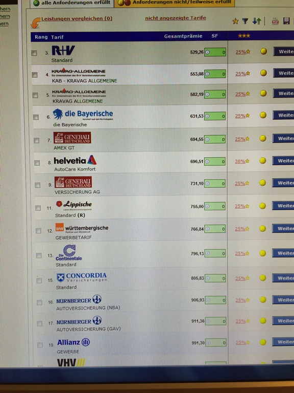 Meine Versicherung, die Allianz, hat sich auch ausser Stande gesehen einen persöhnlichen Tarif anzubieten...