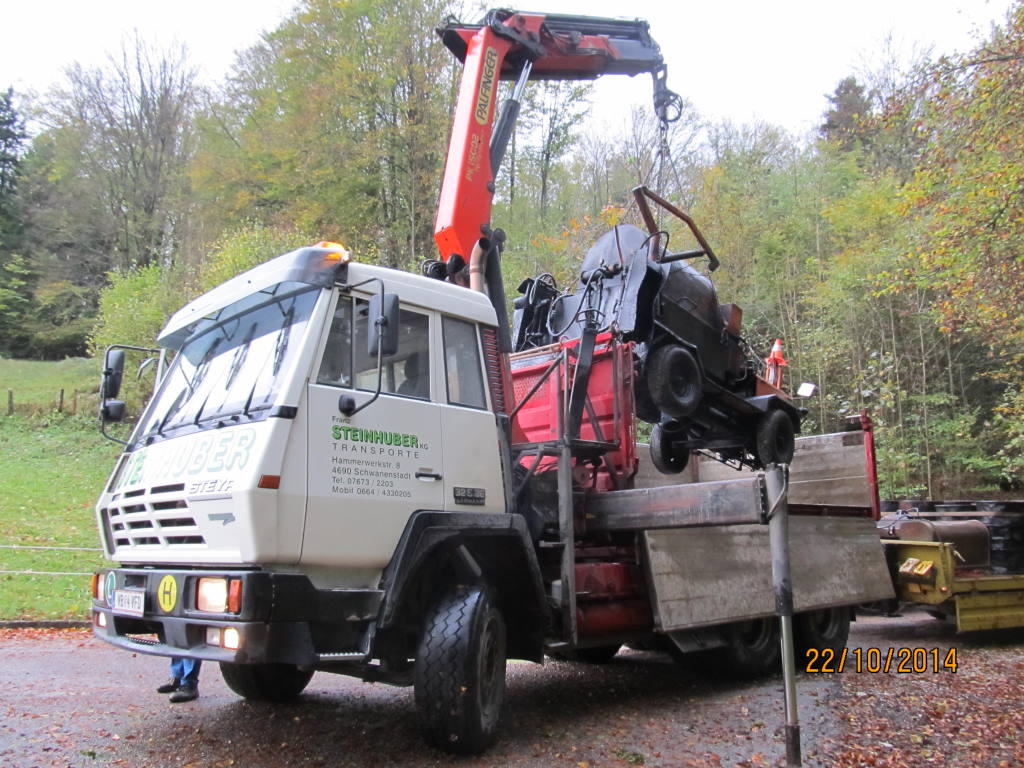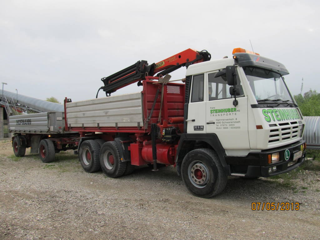 Also, der Oldie (etwa 25 Jahre alt) wird´s bei uns wohl hinter sich haben, als 6x6 hat er allerdings (noch, da werden die Bestimmungen auch bald gewaltig angezogen...) Chancen im Afrika-Export, Kran wollen die am schwarzen Kontinent sowieso keinen und ein gebrauchter Kipper findet sich schon mal, leider stehen die überhaupt nicht auf den Achtender. Bei uns ist eine Reaktivierung zum gew. Einsatz wohl wirtschaftlich absolut nicht vetretbar, eine alten Kran "einfach draufschrauben" geht da schon lang nimmer (ich sag nur neuerliche Abnahemprüfung beim TÜV...) und auch für den Aufbau würde man schweres Gerät und dementsprechende Manpower zur Reparatur benötigen, wenn´s überhaupt möglich ist, da ist neben der Sirnwand sicher auch der Hilfsrahmen anständig beleidigt... Natürlich besonders bitter, wenn erst kürzlich fest investiert wurde, ich weiß wie schnell da 10.000,-- verbraten sind...