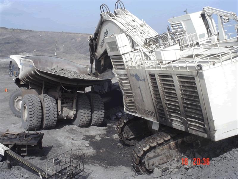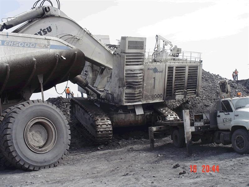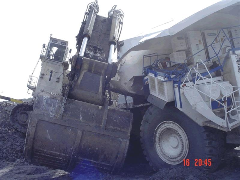 . Im Vergleich zum PC8000 sehen diese EH5000 mit etwa 280 Tonnen Nutzlast verdammt klein aus