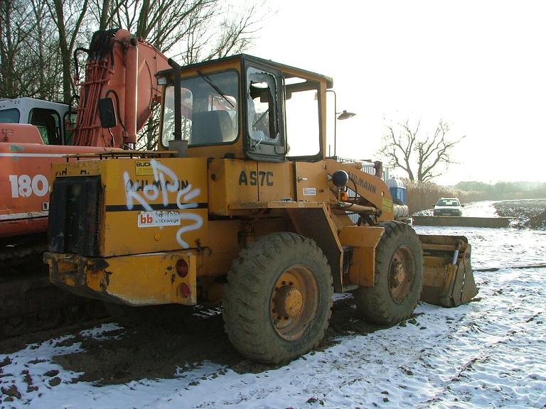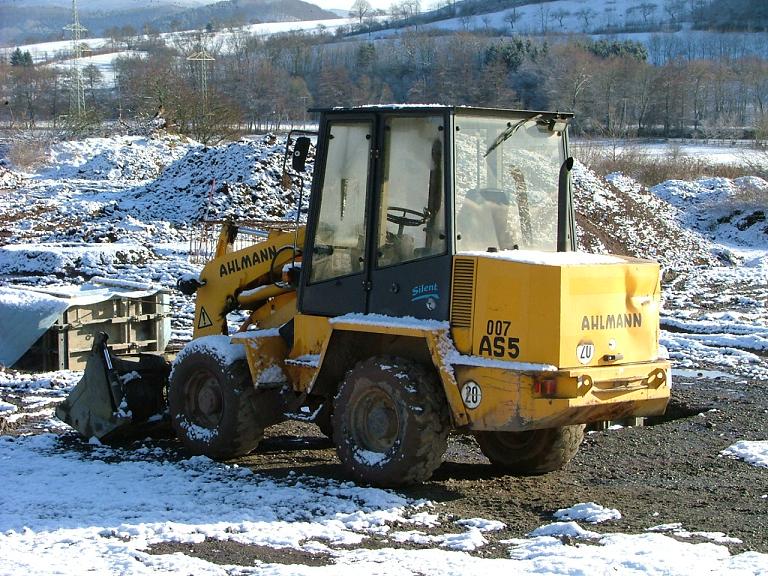Ahlmann AL7D. Beide Lader gehören der Oskar Vogel Bau aus Eimeldingen. Der eine arbeitete im Sommer 2002 bei einer Neubaugebietserschließung 100 m vor meiner Haustür, der andere bei der Fertigstellung des Autobahnanschlusses der A98 im November 2002.