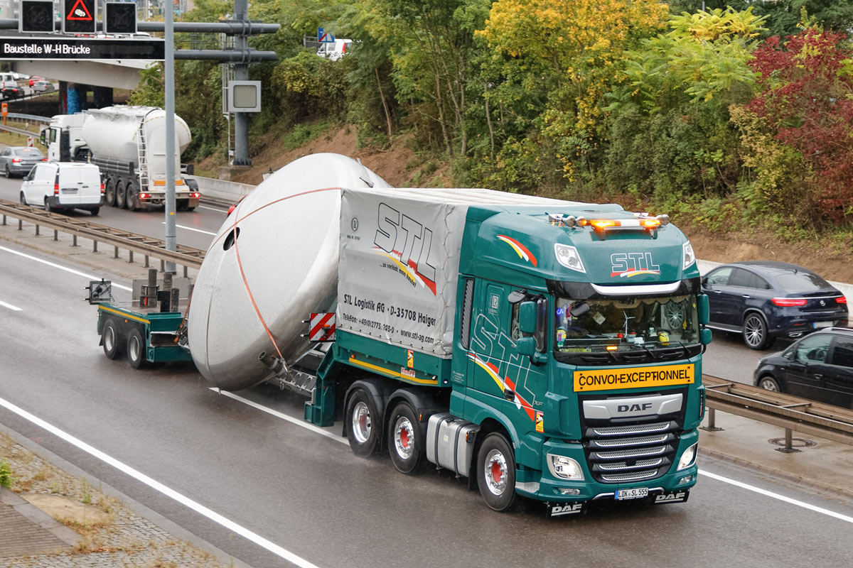 Ein DAF Schräglader mit Deckeln oder Böden, (Saarbrücken, 2021):