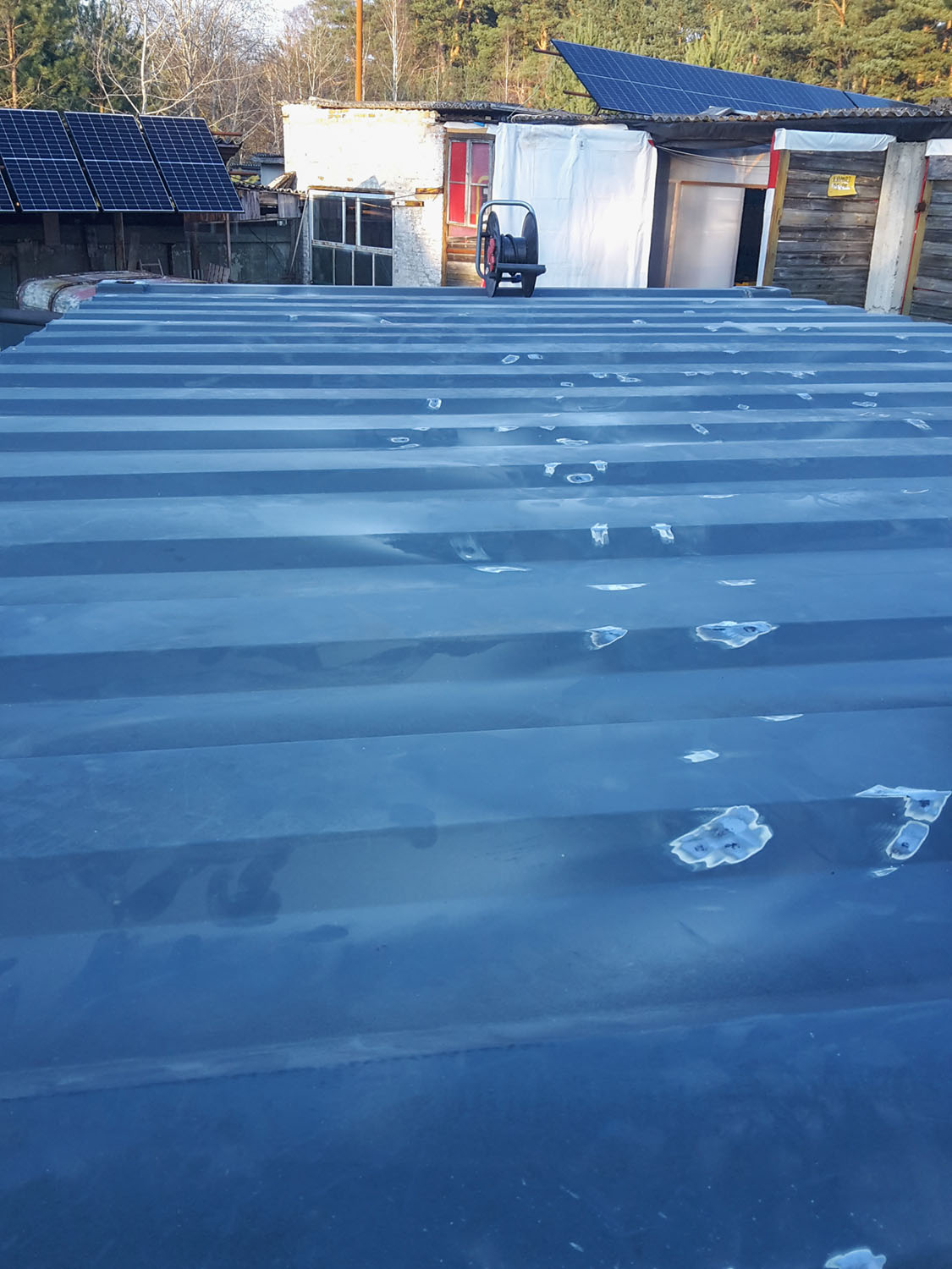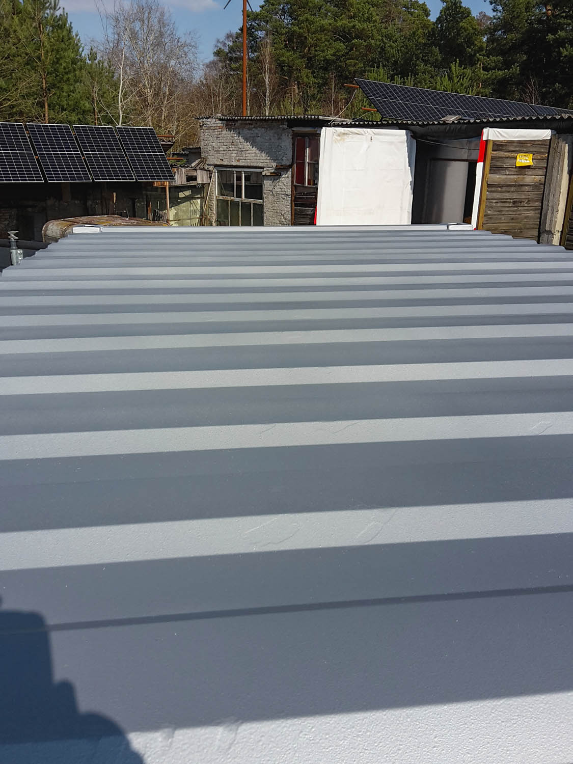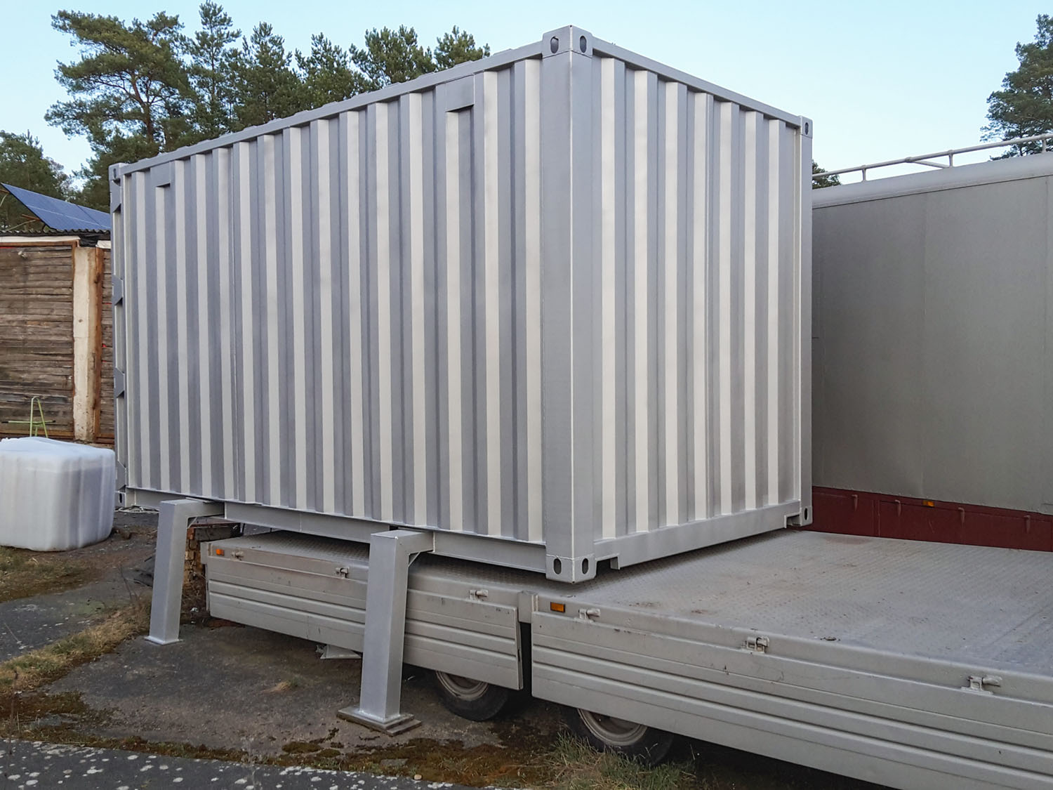 Außerdem wird der Container glühend heiß in der Sonne, also habe ich jetzt zu RAL 9006 gegriffen, "Weiß Aluminium" wieder mit der rauen Oberflächenstruktur.