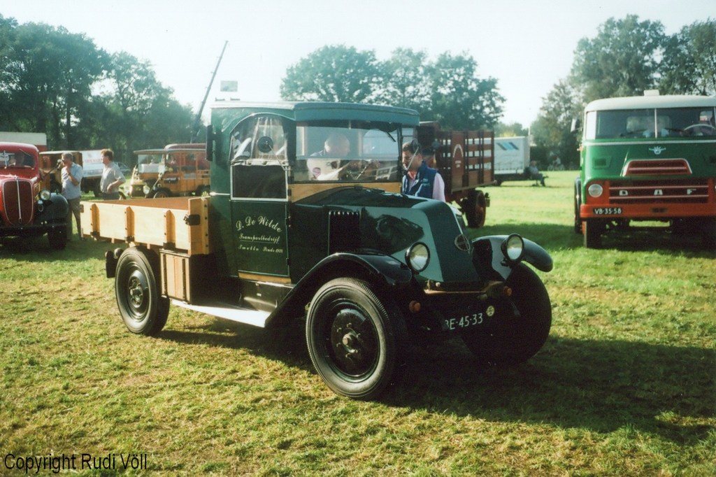 Und zwar mit einem kleinen Pritschenwagen aus den 20er Jahren, der auch beim Oldtimer-LKW-Treffen im Holländischen Stroe anzutreffen war.