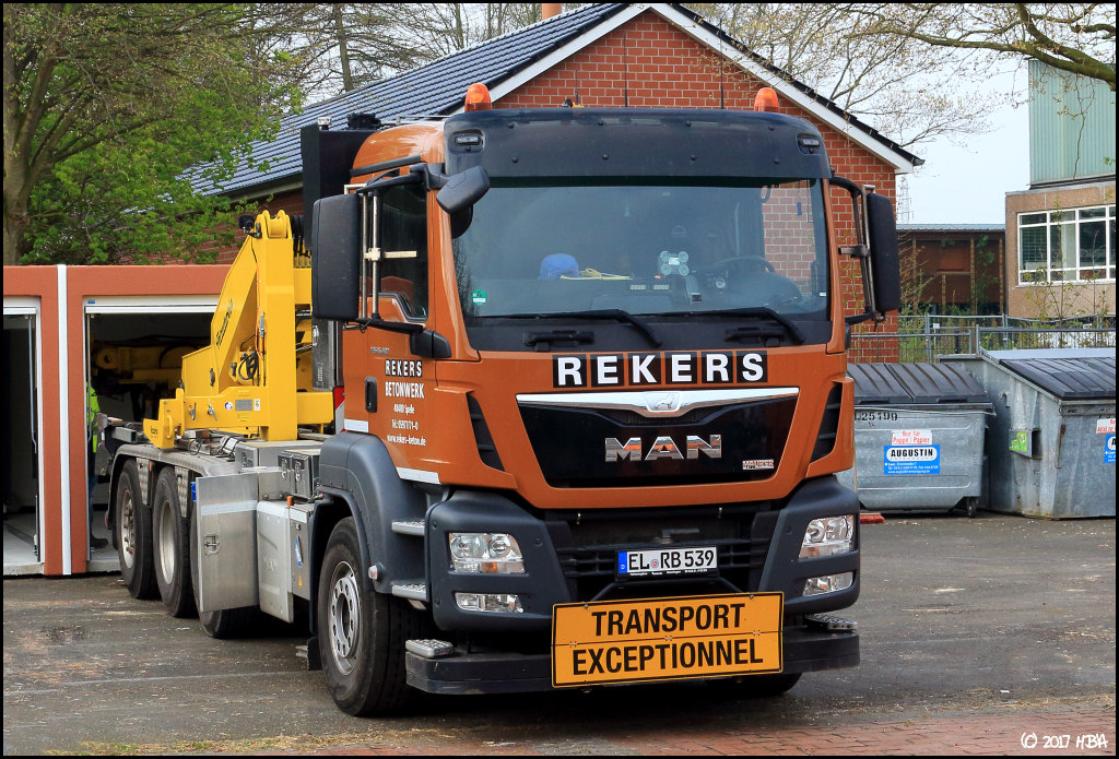 Dann gibt es im Nachbarort eine Fremd -Firma ,die auch Transporte für Rekers durchführt. Dort laufen auch Fahrzeuge in Rekers -Lackierung , die vermutlich mal übernommen wurden .