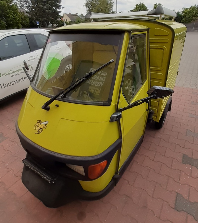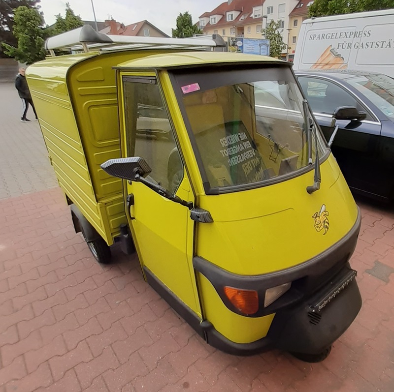 wieder mal eine Kaffee-Ape aus München (trotz des Kennzeichens vom Ostseestrand am PKW dahinter...).