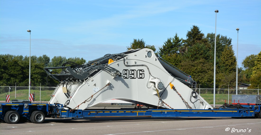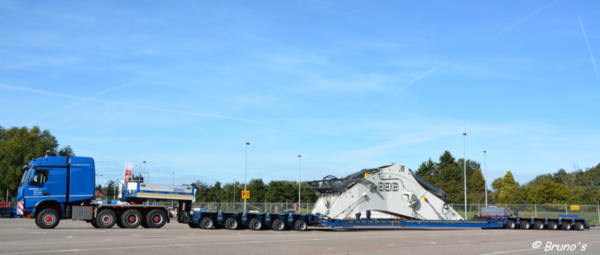 Finde ich eine tolle Sache, das uns Hegmann Transit so einen Transport gezeigt hat, ein Kollege mit einem Laufwerk vom Liebherr R996B war auch noch da.