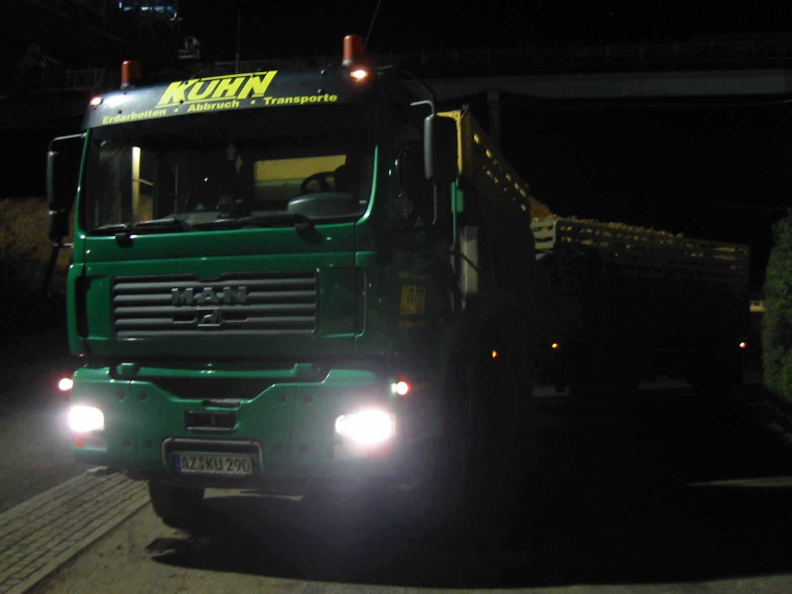 Sind so um die 16to pro Tour und man hat das Gefühl, das es im Fahrerhaus lauter als Draussen wäre
