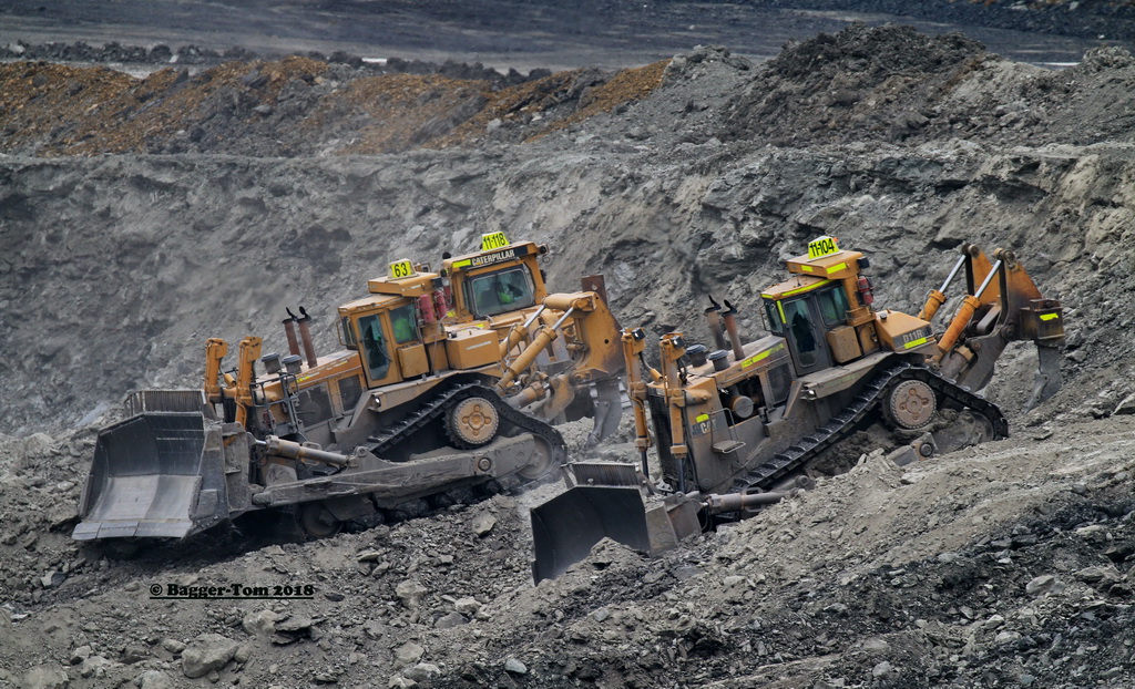 Einige D11R auf einem Haufen, ich habe insgesamt 10 gezählt die dort Abraum schieben.