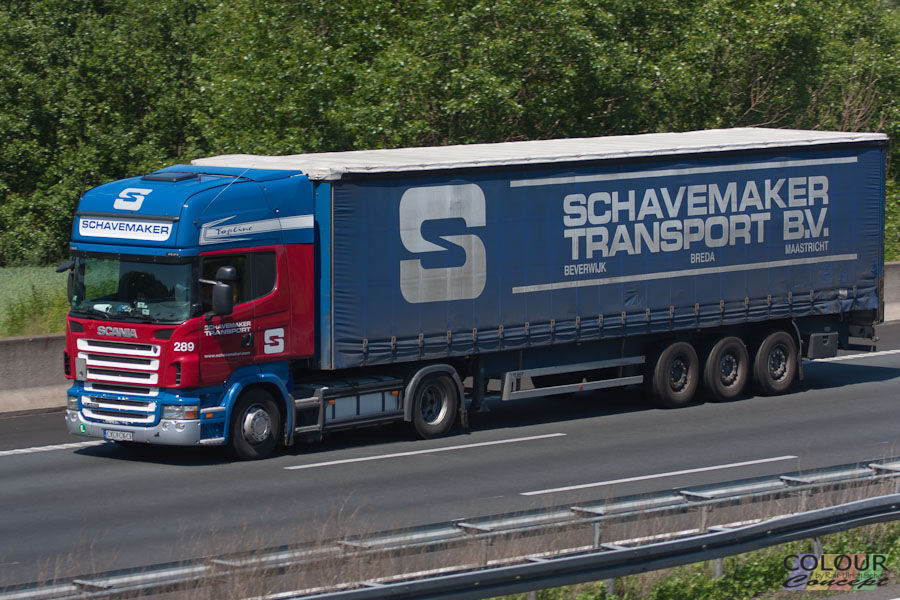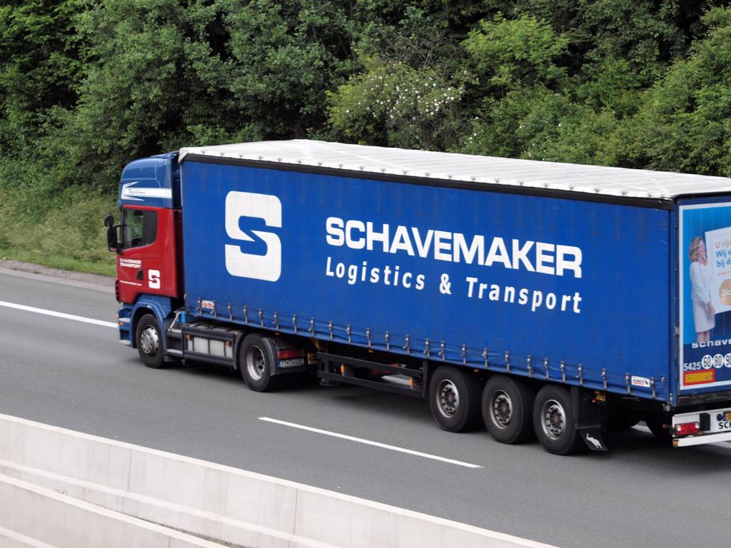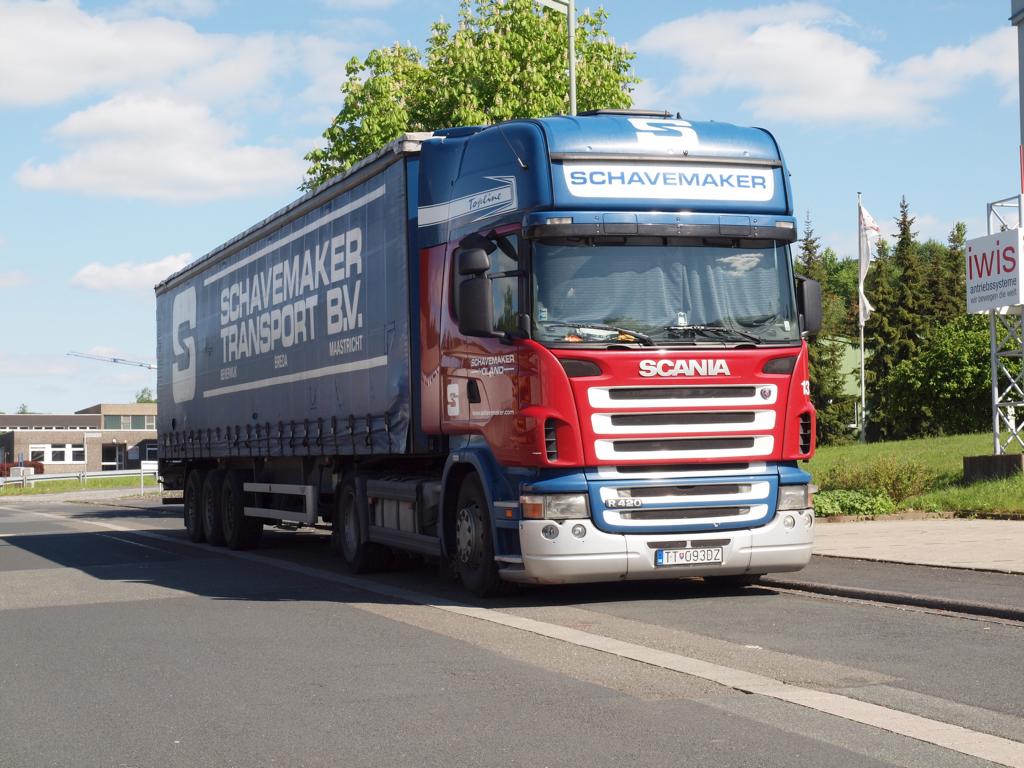 Scania R420 mit Gardinenplanenauflieger, Schavemaker Transport |