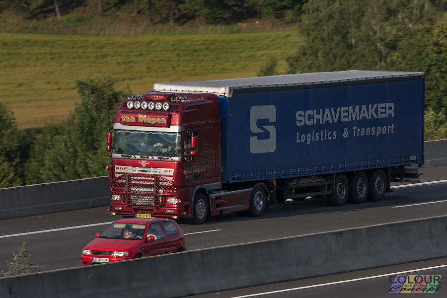 DAF XF 105 "van Diepen" mit Gardinenplanenauflieger, Schavemaker |