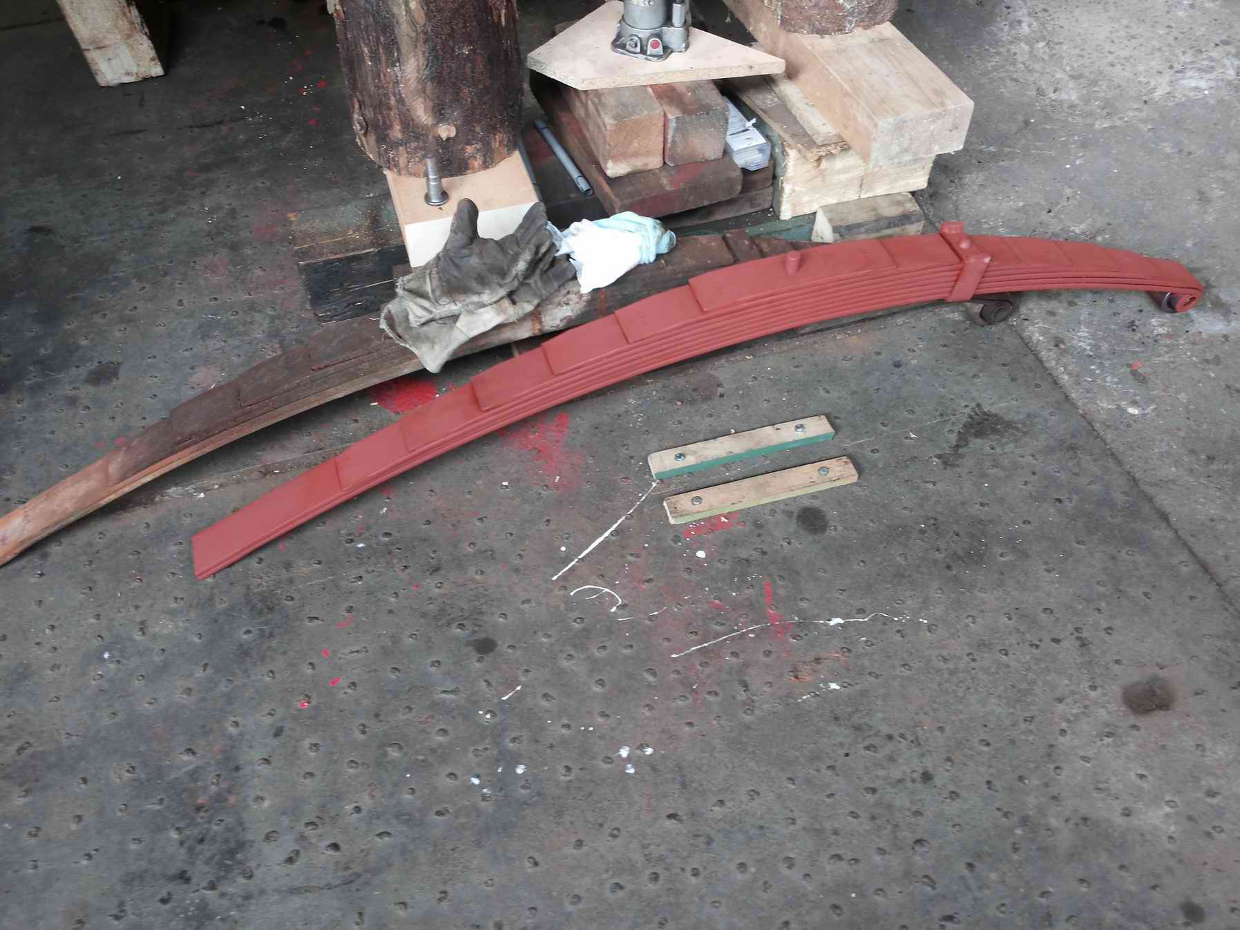 Habe dann heute schon mal 1 Feder gereinigt, die war so verschmoddert, daß man keine Federbleche mehr gesehen hat. Habe auch direkt die Federklammer wieder geschweißt, die Nähte waren eingerissen. Bin bis zum Grundieren gekommen.