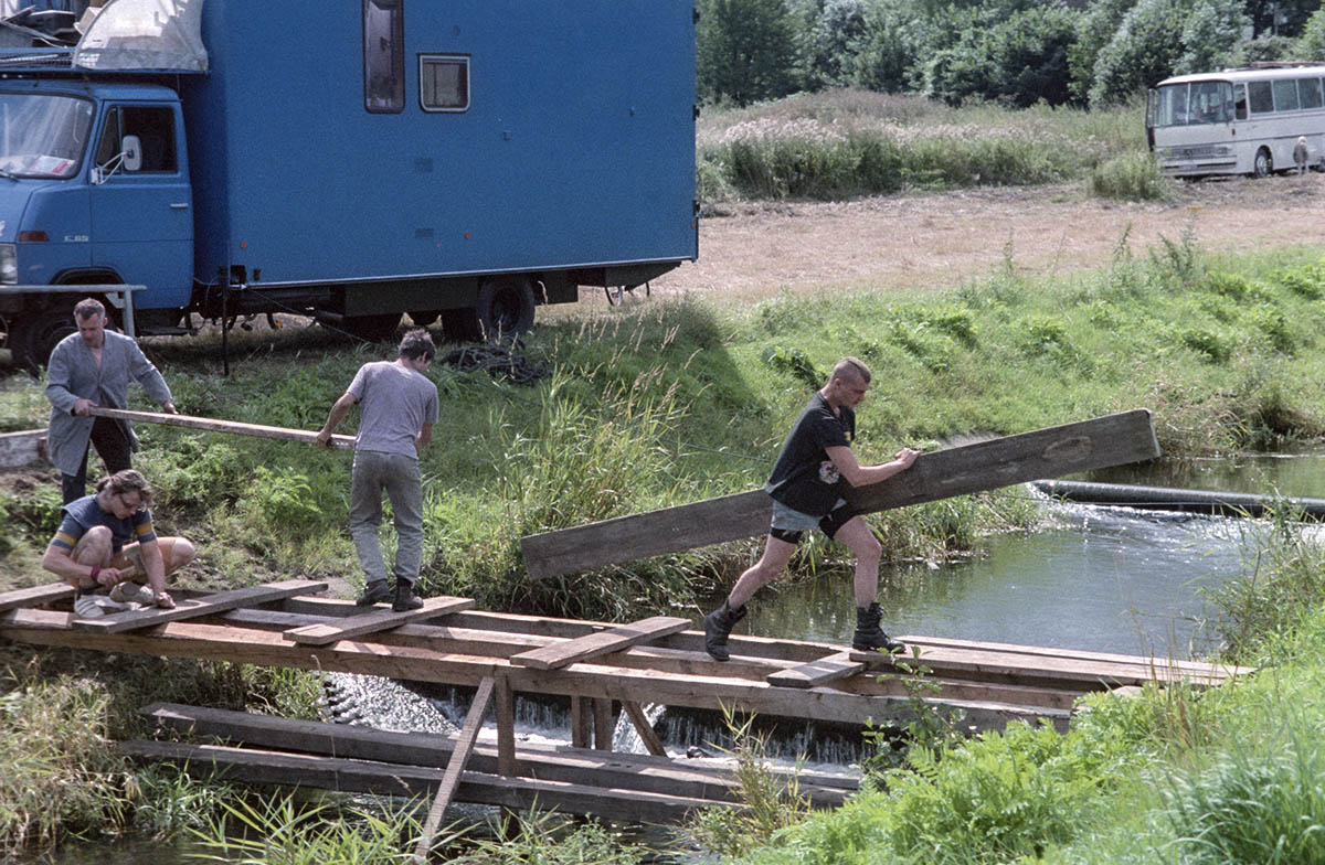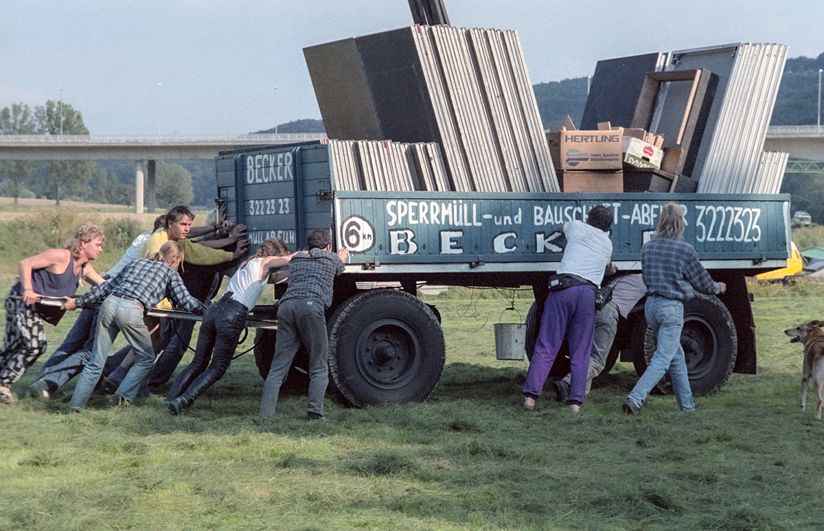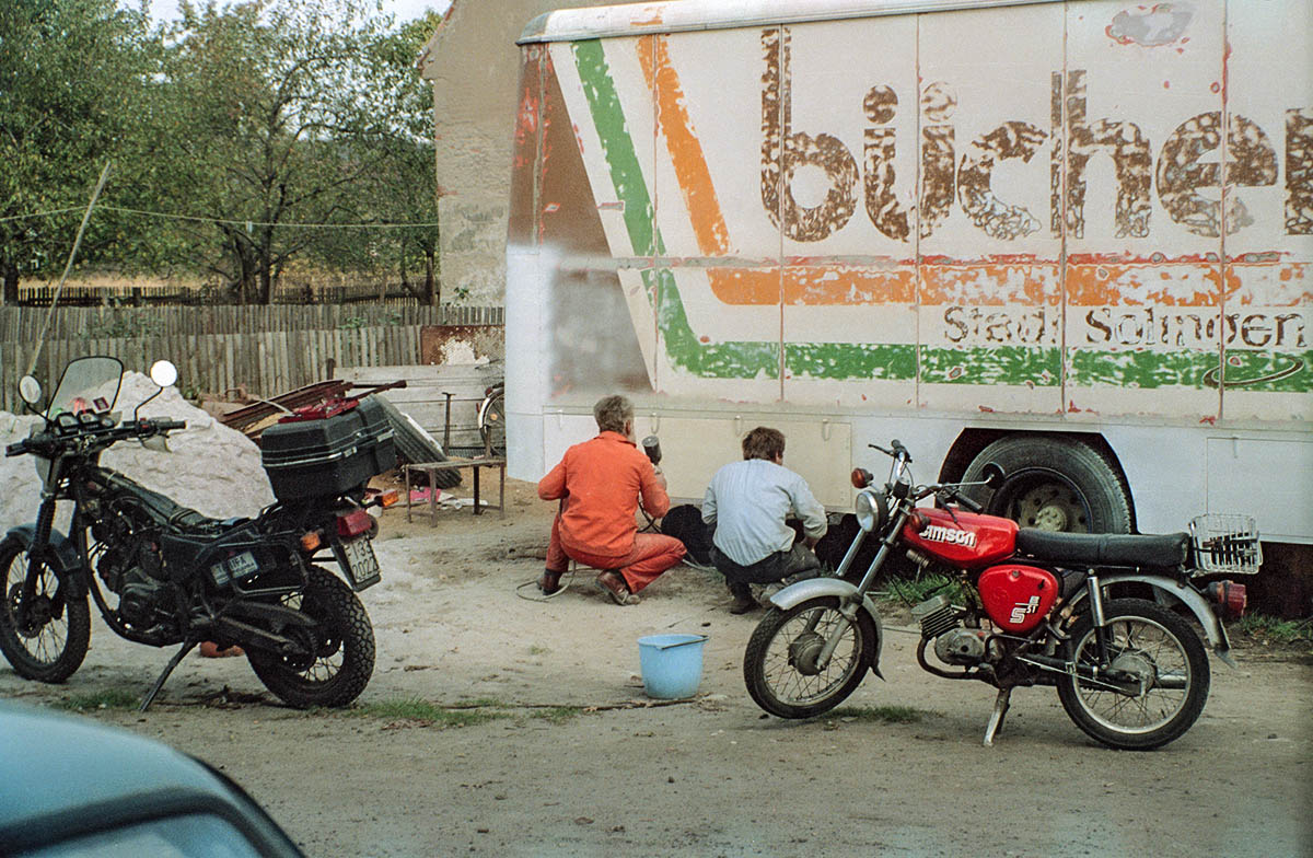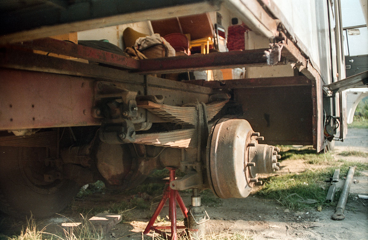 Auf dem letzten Foto des 1. Teils mit dem Kollegen, der sich todesmutig unter die Wechselpritsche stellte, ist mir noch etwas Besonderes aufgefallen: die moderne Technik, mit der wir damals unterwegs waren.