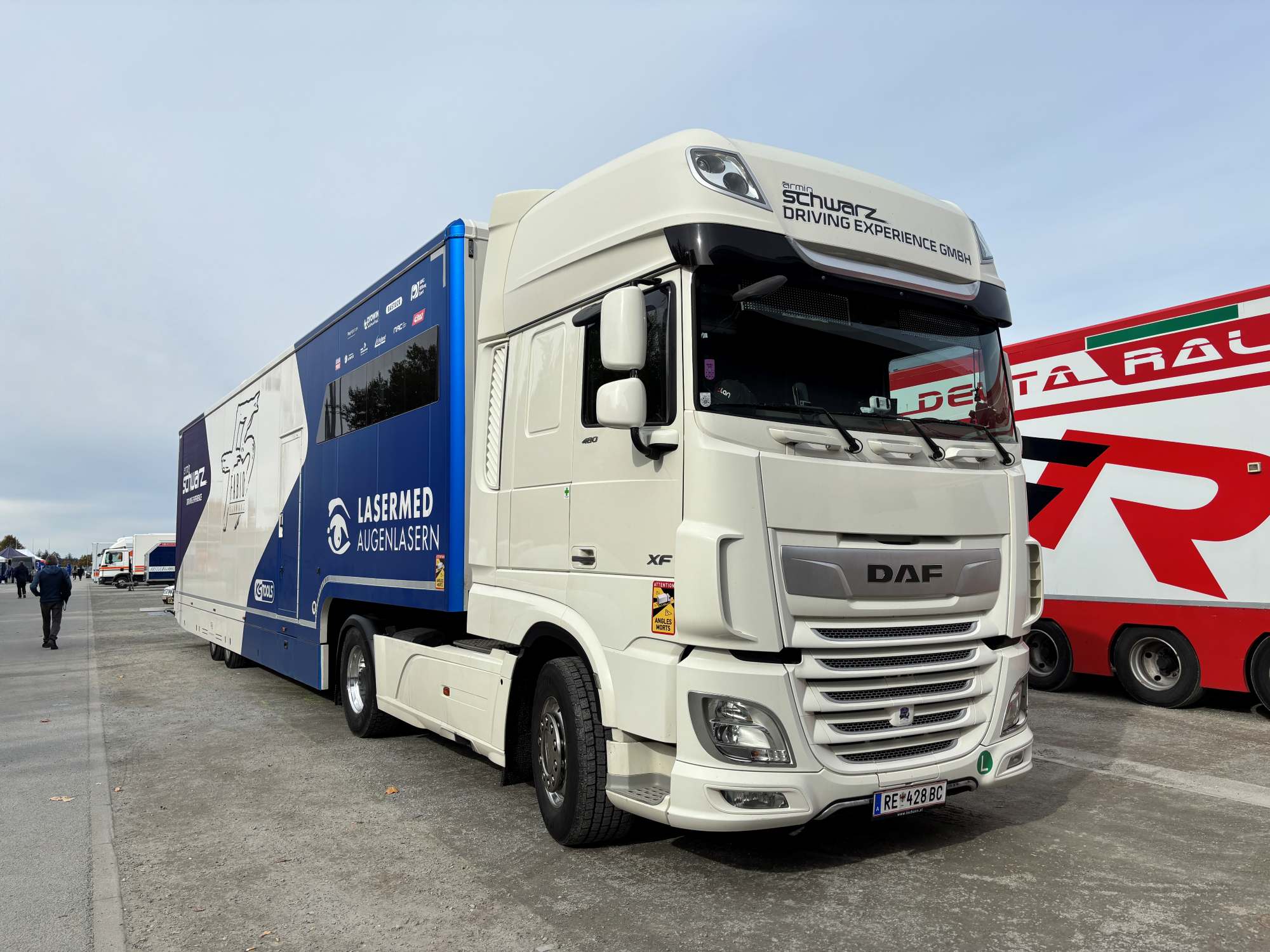 DAF XF 480 von Armin Schwarz, fotografiert am Messegelände in Passau, wo sich momentan das Fahrerlager der Central European Rally befindet