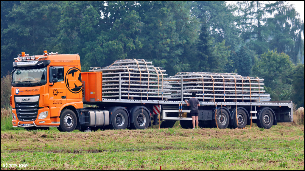 DAF XF 530 der Kröger Transporte bringt Filigrandecken in einem Neubaugebiet.