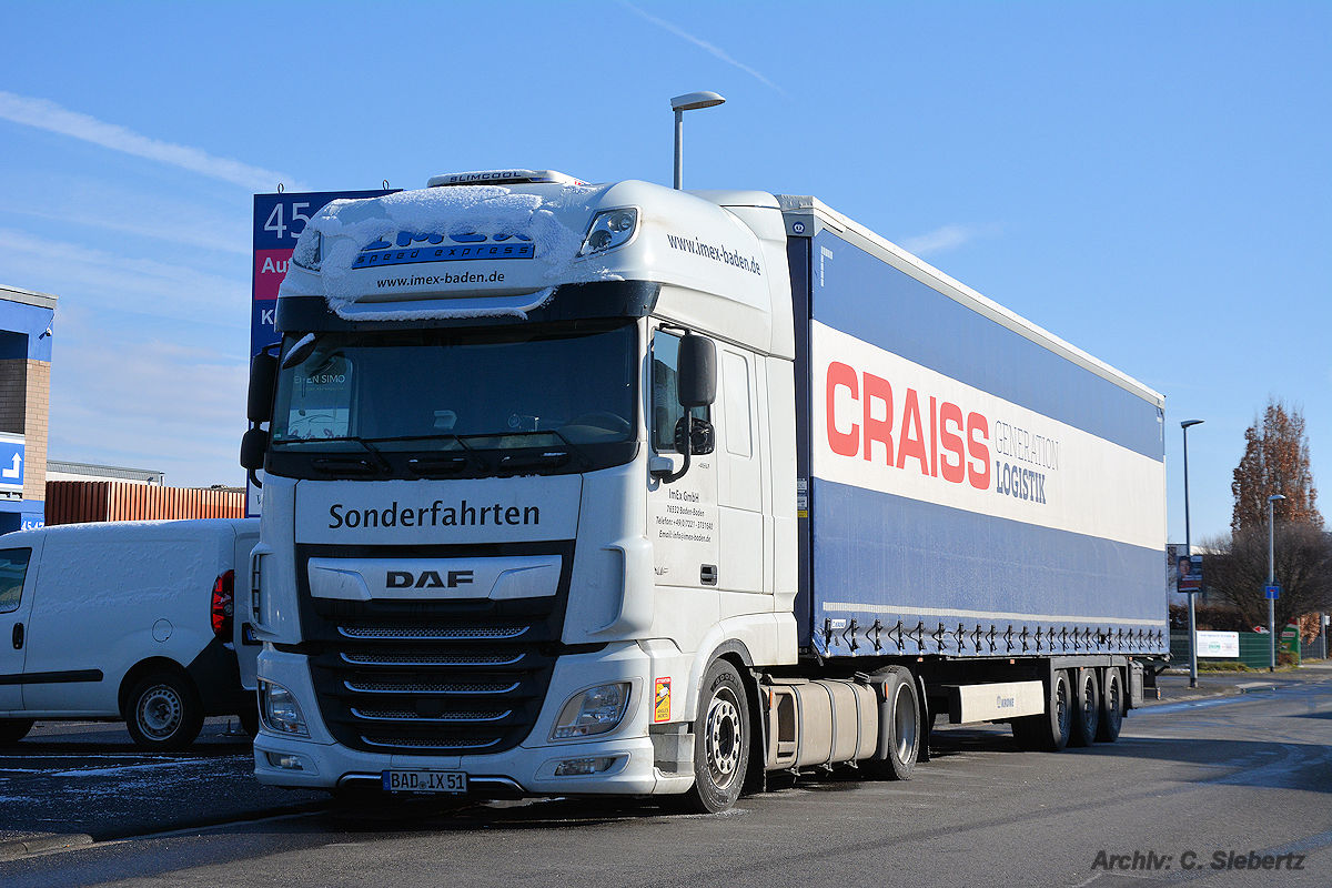 Hier auf die Schnelle ein weiterer DAF XF 480 E6 SSC von der ImEx GmbH aus Baden-Baden. Gekoppelt mit einem Krone Auflieger von Craiss Logistik aus Mühlacker.