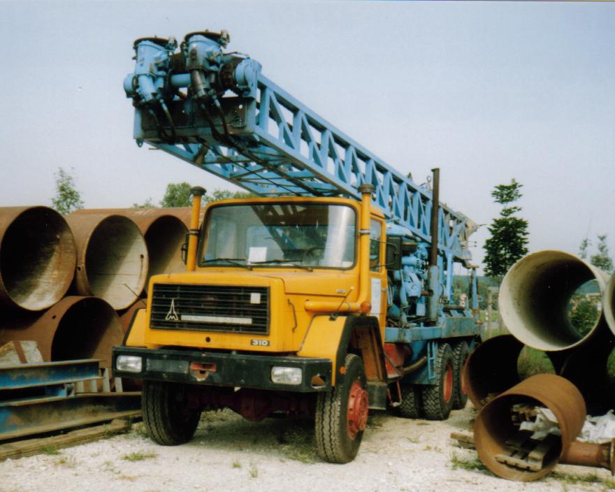Verschiedene Eckhauber mit Bohrgeräteaufbauten.