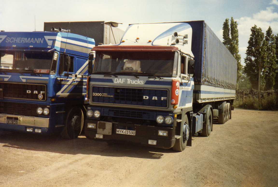 mein Dia von 1980 zeigt einen DAF 2800 TI der bekannten österreichischen Spedition Karl Augustin neben einem etwas älteren DAF 2800. Die Aufnahme entstand in Koblenz.