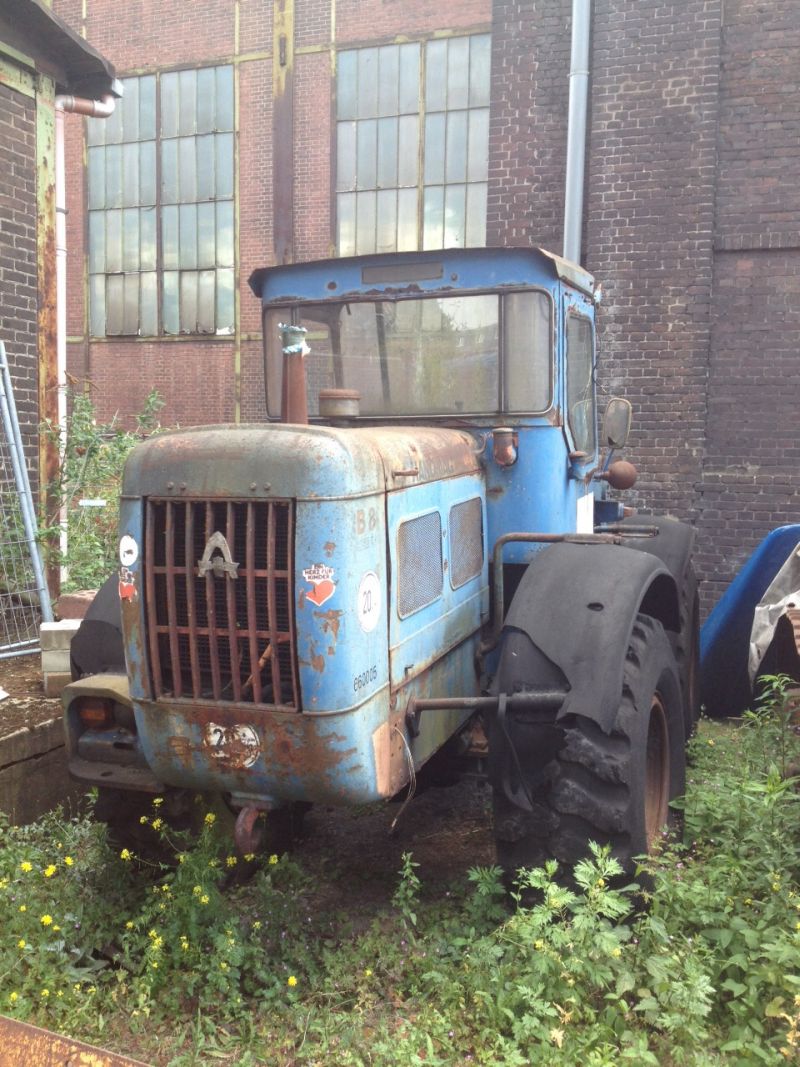 Sehr gut versteckter Hanomag B8 mit demontierter Kabine in einer Halle