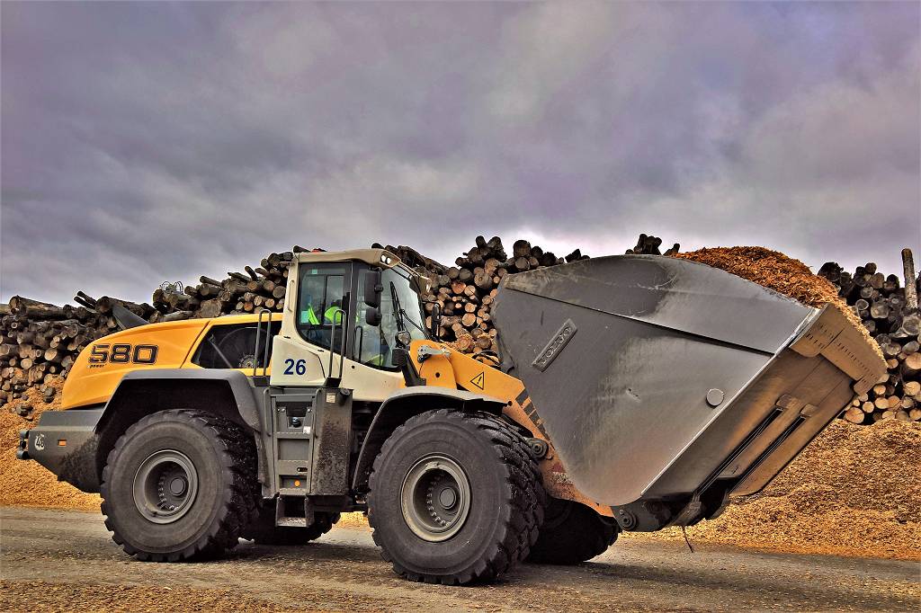 Ein Liebherr L580 XPower mit IND Kinematik im Sägewerk.