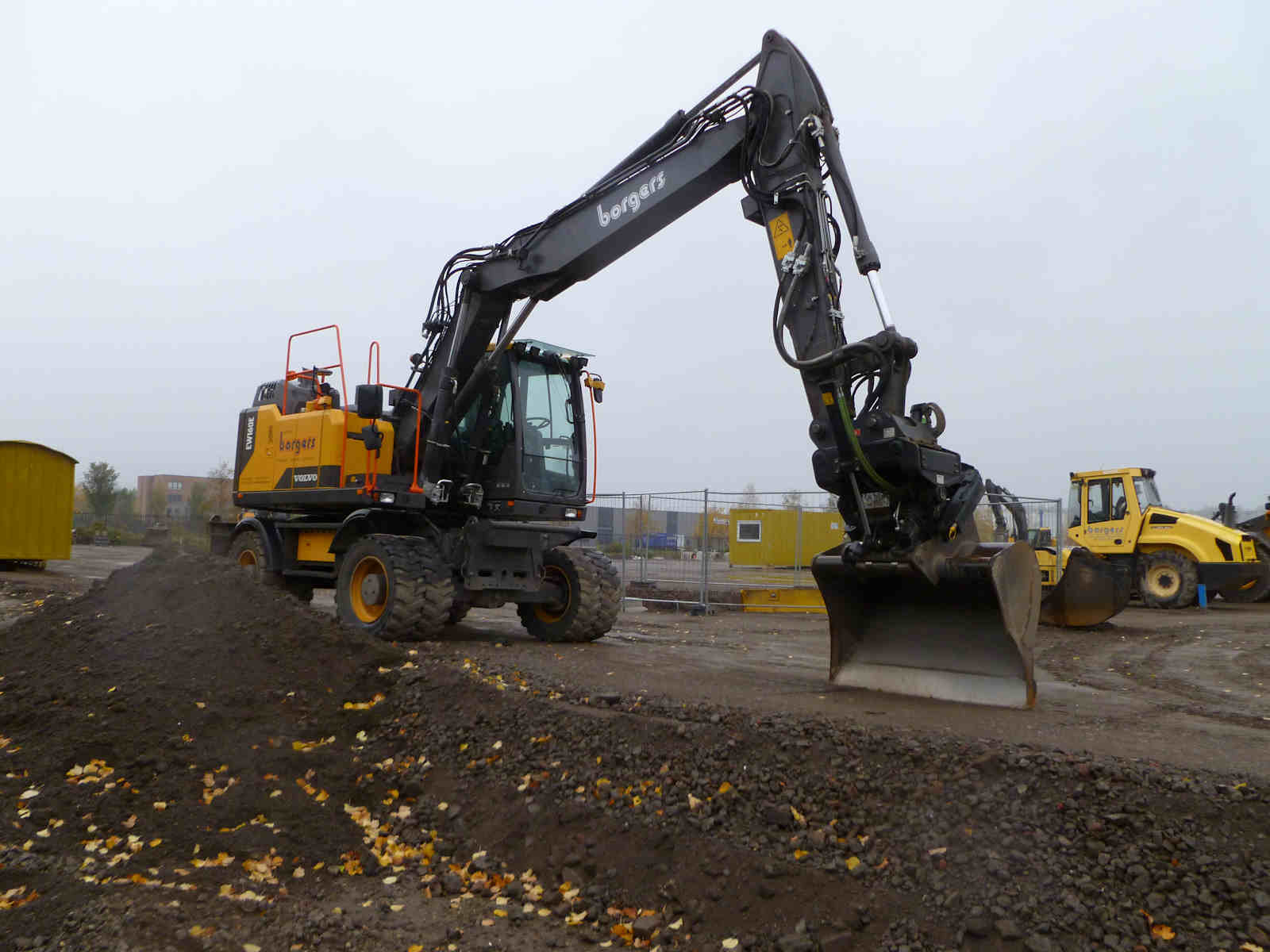 VOLVO EW 160 E in Firmenfarben und mit Tiltrotator in Düsseldorf.