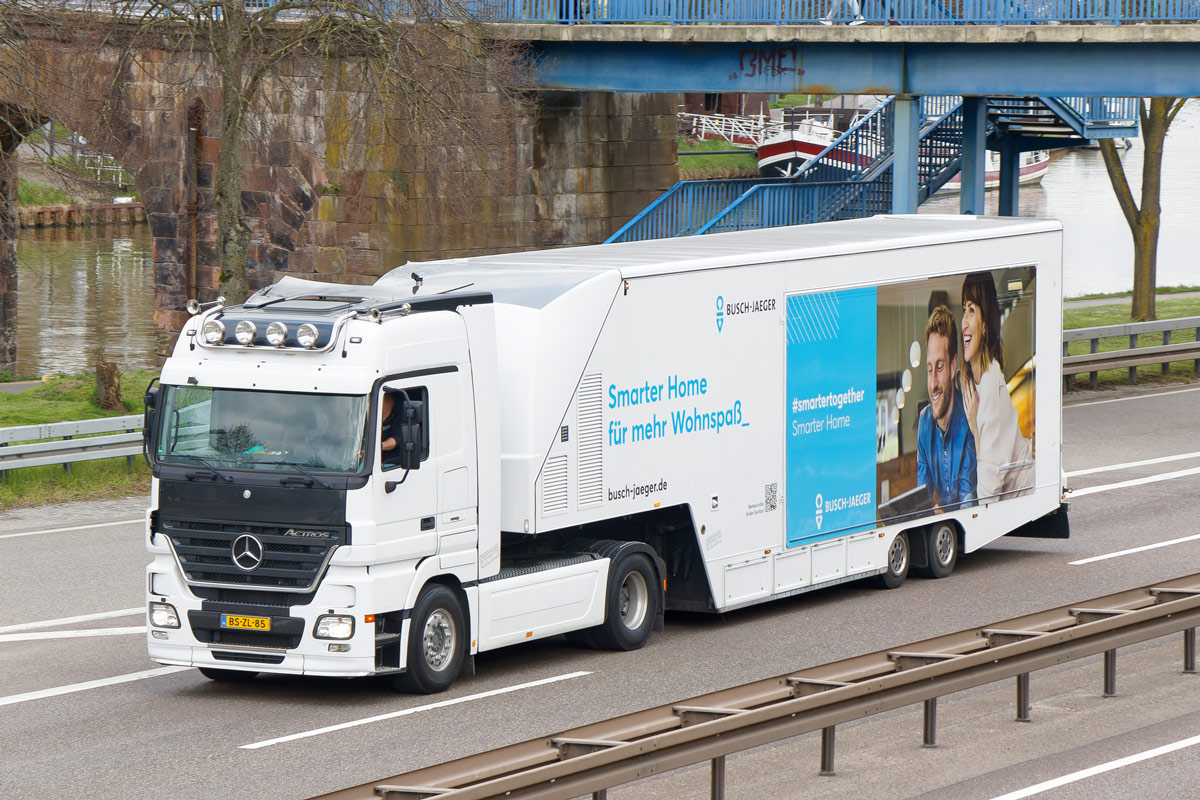 Ein Actros MP2 unterwegs für mit Busch-Jaeger (Saarbrücken, 2023):