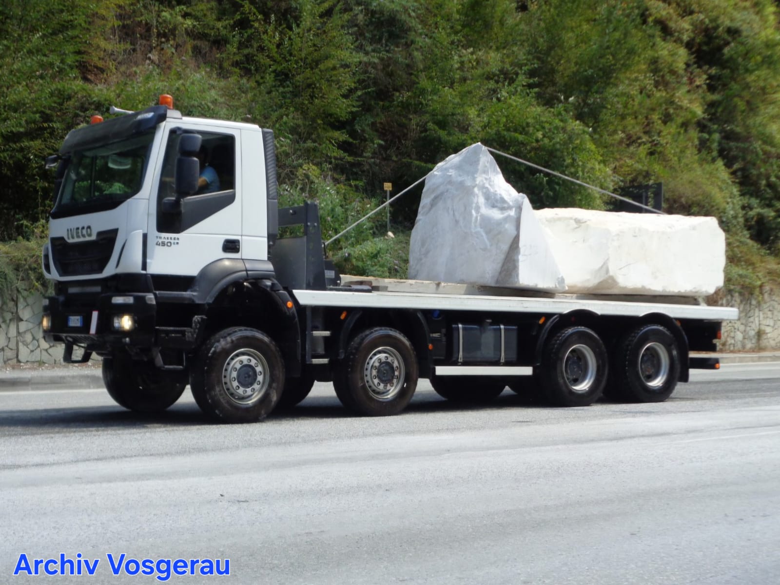 Fertig verwogene IVECO Trakker an der Waage der Steinbrüche von Massa di Carrara (201cool . Was für ein Erlebnis! klatsch