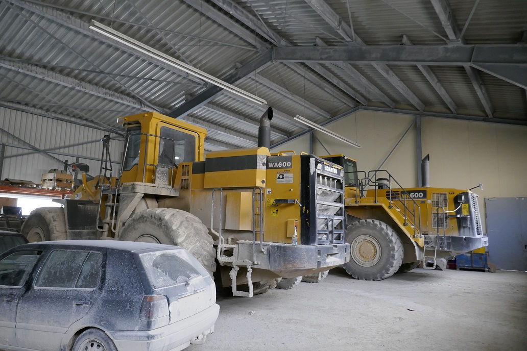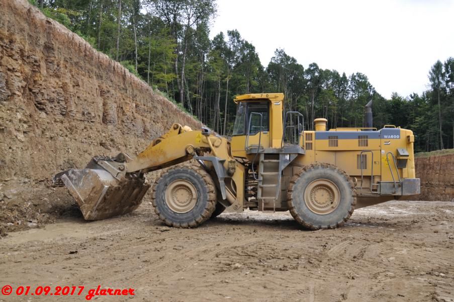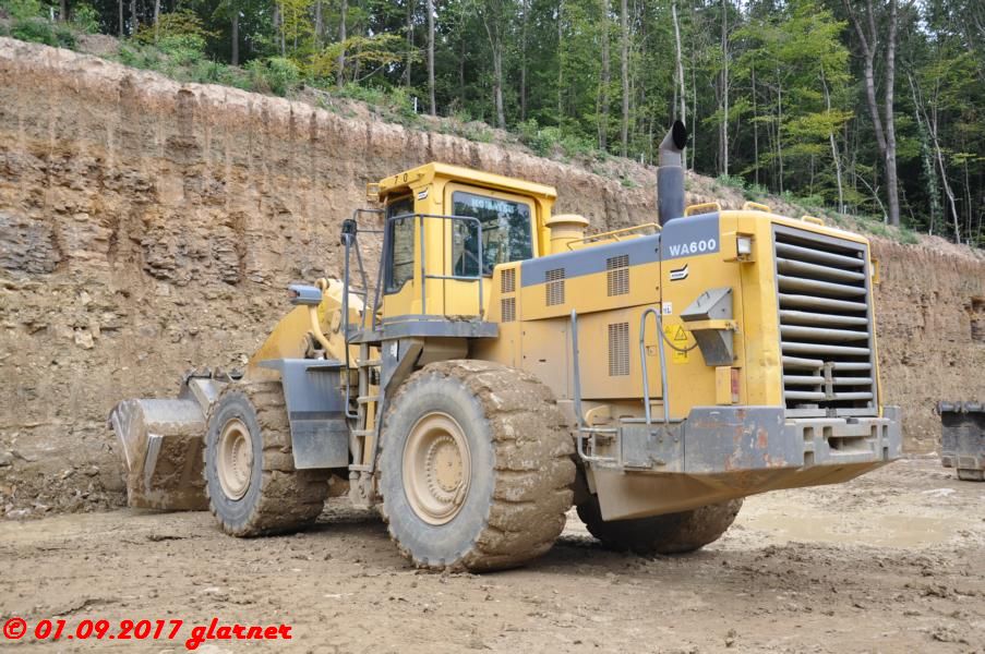 Hier ein Komatsu WA600 aus dem Allgäu beim Umsetzten von Abdeckboden. Im Normalfall baut er Kies ab. daumen