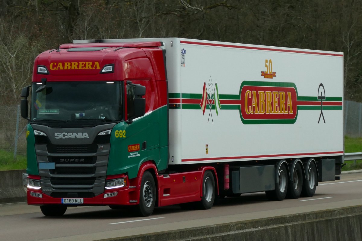 Die alten Scania R mit dem schwarzen Grill machen richtig was her finde ich, die neuen S mit dem grau in grau Grill sind dagegen nicht mehr so schön. Darüber hinaus wundert mich auch immer wieder, das Cabrera noch die alten Magnum einsetzt, die sind auch noch international unterwegs, mindestens drei gibt es noch. Hier ein Exemplar unterwegs in Frankreich.