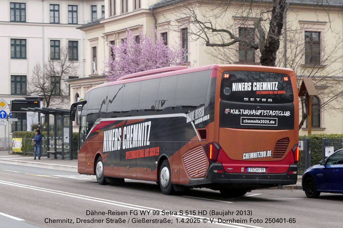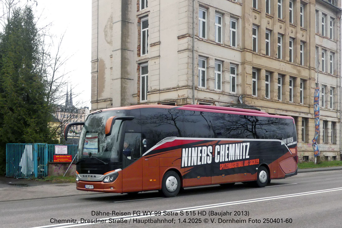 Dähne-Reisen FG WY 99 Setra S 515 HD (Baujahr 2013) am 1.4.2025 in Chemnitz.