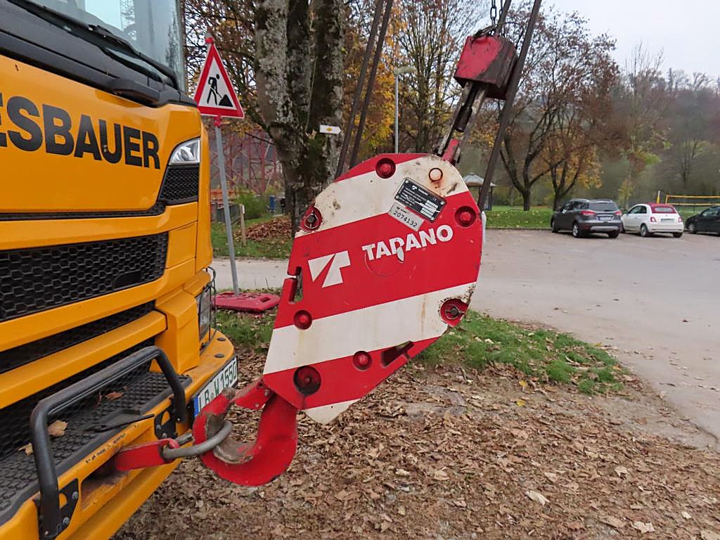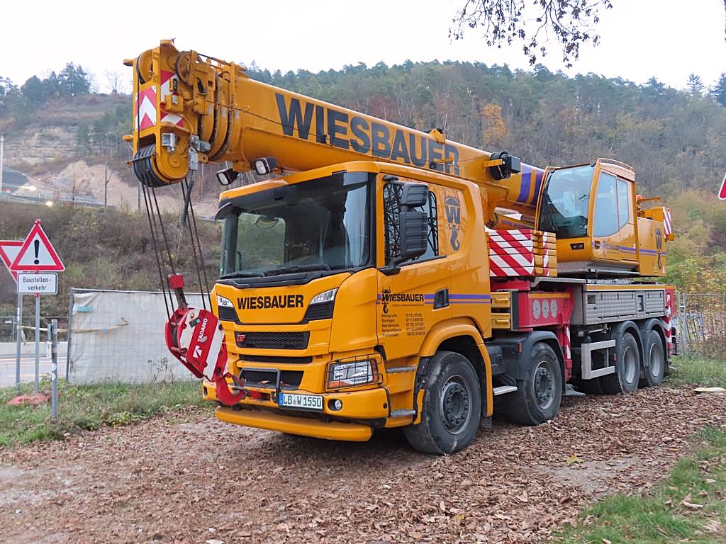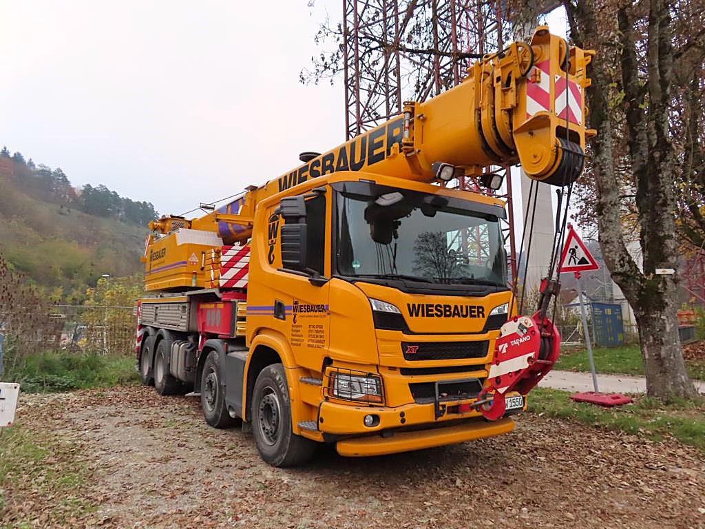 Der gleiche Kran wie auf Markus seinem Bild. Scania XT mit Tadano Aufbaukran als Hilfskran für den Liebherr LTM 1350 und LTM 1650 bei der Neckartalbrücke in Horb.