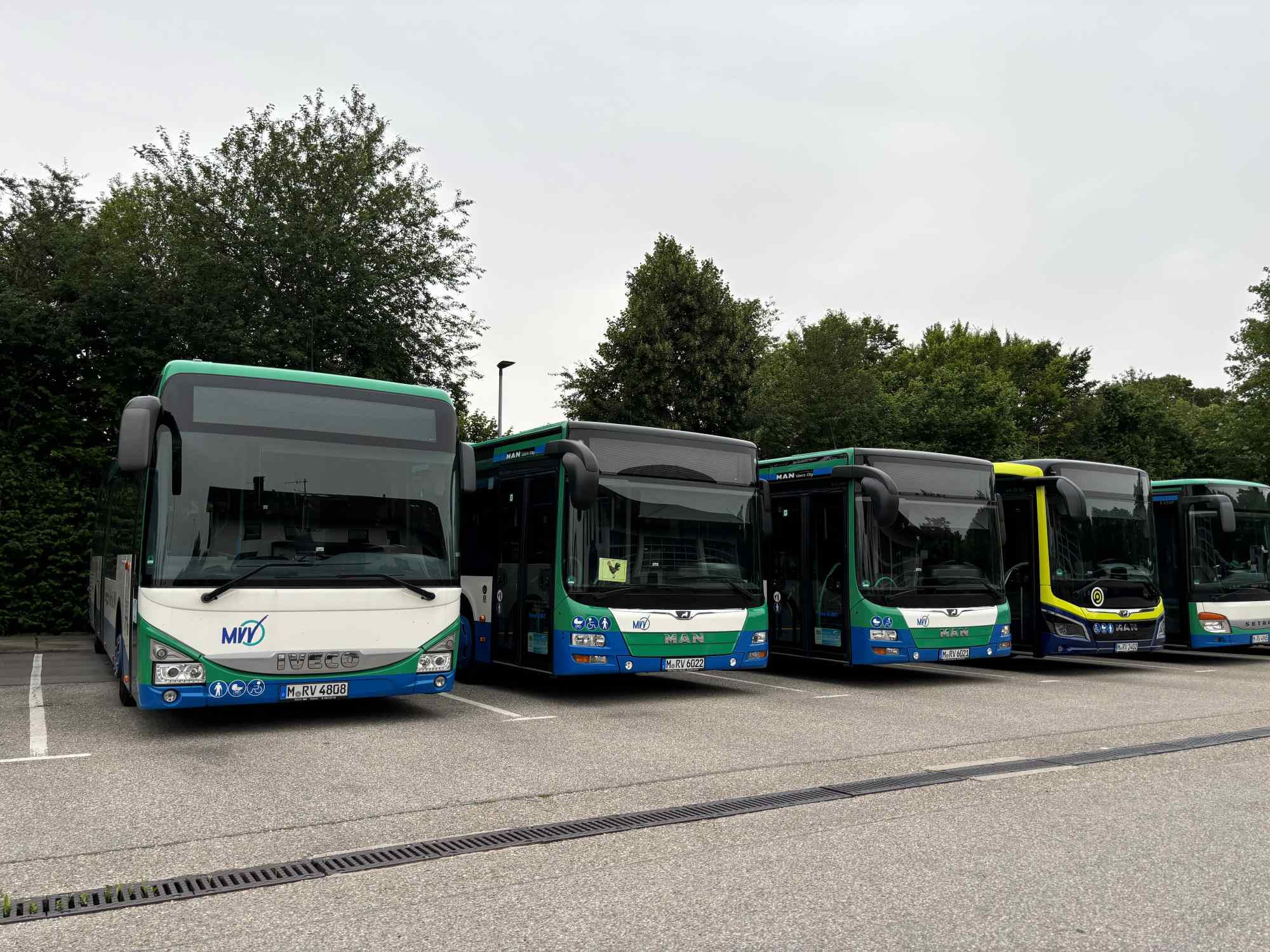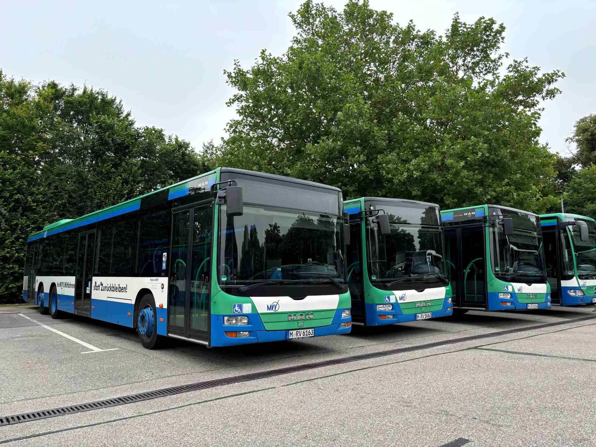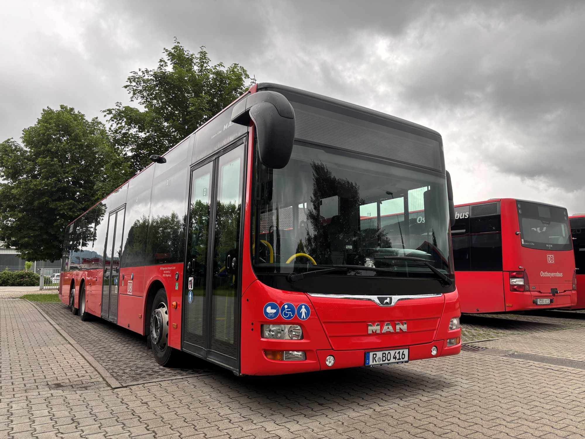 Zu Beginn zwei gewöhnliche MAN in verkehrsrot: