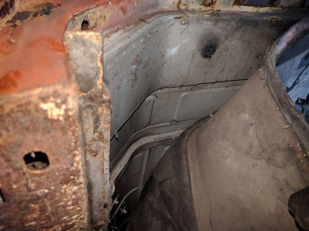 Das Fahrerhaus steht derzeit gut eingepackt in einer Ecke und wartet darauf aufgearbeitet zu werden. Schön zu sehen ist der super Zustand vom Blech unter bzw. hinter der Motordämmung. Da ist zum Glück kein Rost.
