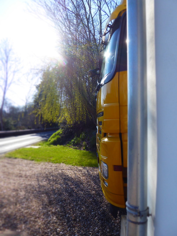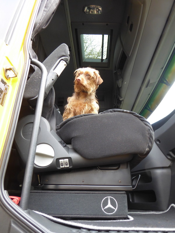 Mittlerweile Actros vollgetankt...und zum allerersten Mal Dackelinchen als Beifahrer mitgenommen. Sieht mal so aus, als würde sie es genießen jo