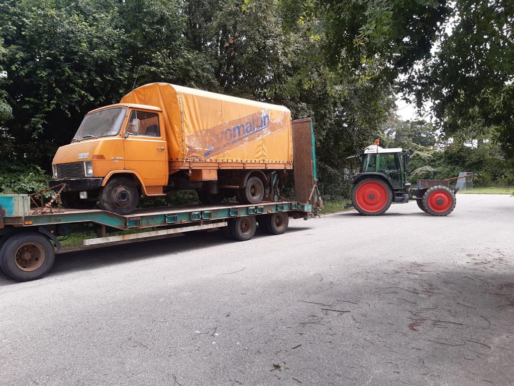 Hier ein paar Bilder von einem Hanomag F66, der wohl knapp 30Jahre in einer Scheune gestanden hat. Nach der langen Standzeit war der Motor fest. Der Hanomag wurde dann "stilecht" in sein neues Zuhause transportiert....