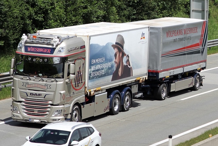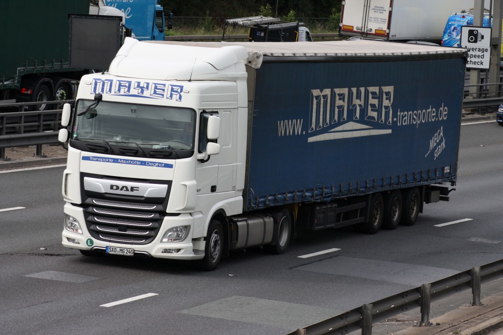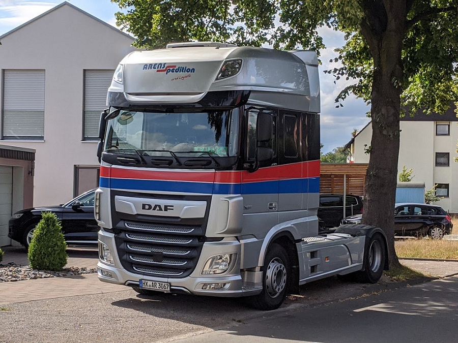 in der Abenddämmerung eines Tages im März 2017 konnte ich auf der Raststätte Aachener Land diesen XF460SuperSpaceCab Jumbopritschensattelzug von Hyncica fotografieren.